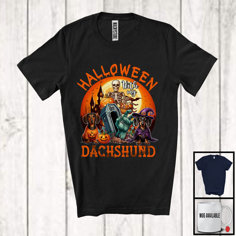 new MacnyStore - Halloween With My Dachshund; Scary Moon Skeleton Zombie Hand; Pumpkin Candy Lover T-Shirt – Macnystore