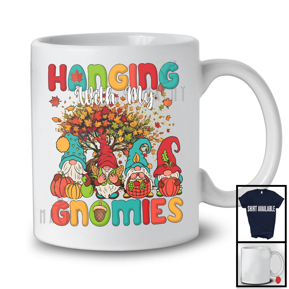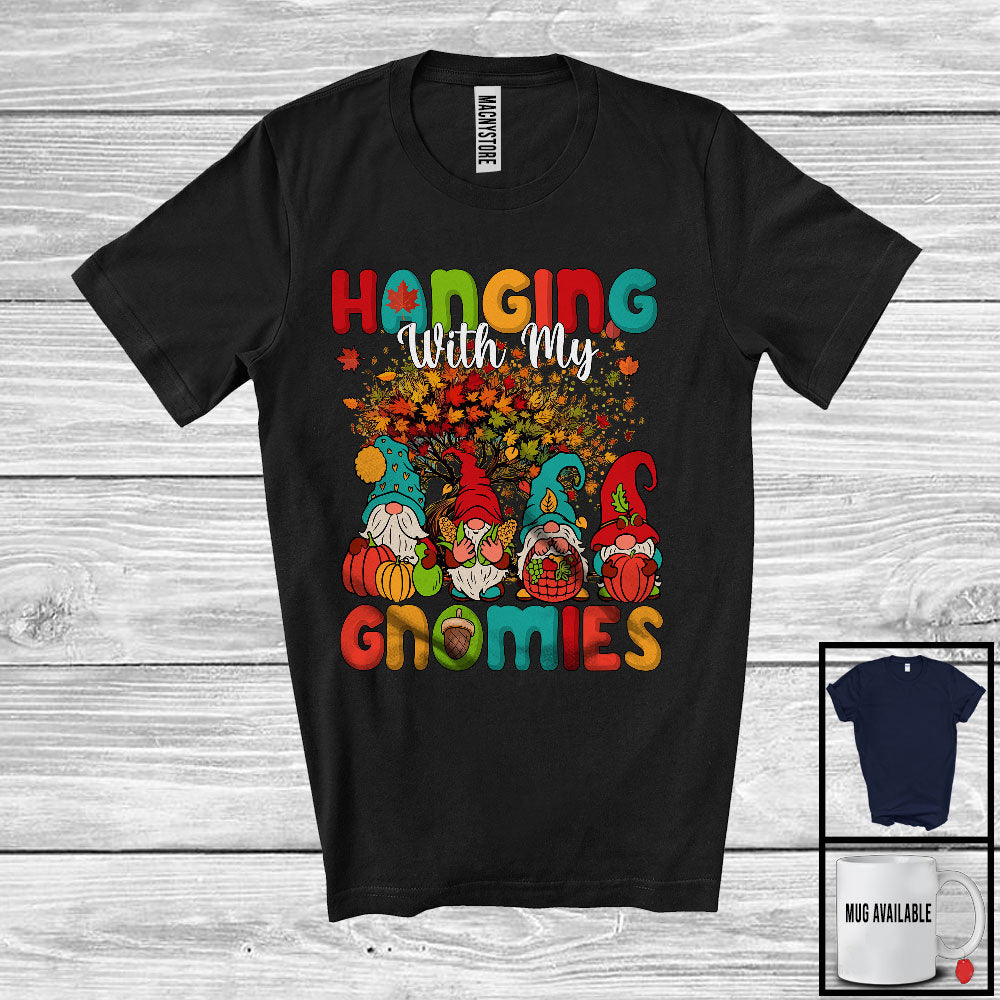 • Hanging With My Gnomies, Lovely Thanksgiving Group Of Four Gnomes, Fall Leaves Tree Pumpkins T-Shirt. This cotton t-shirt is a durable staple product with a classic fit. One of the most popular items, it has a relaxed style made for everyday and casual wear.