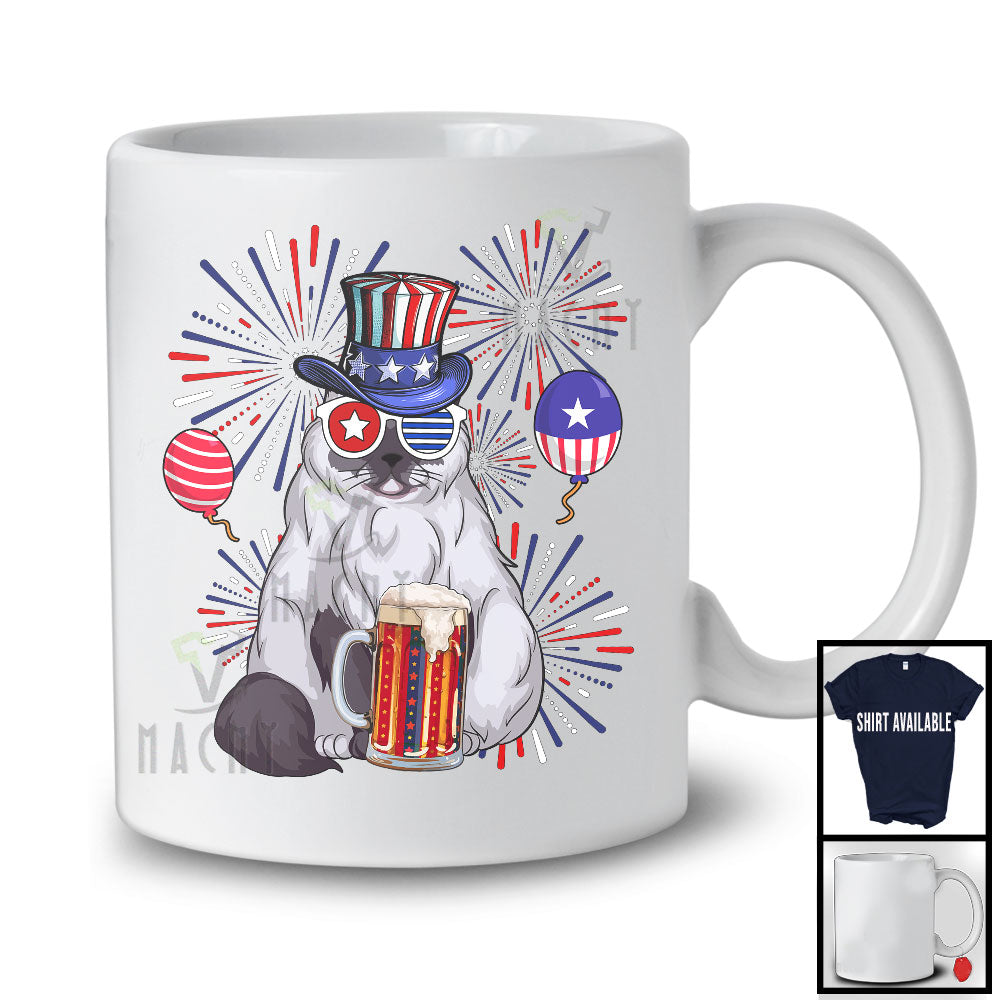 Himalayan Cat Drinking Beer, Awesome 4th Of July Fireworks Kitten, Drunker Patriotic Group T-Shirt