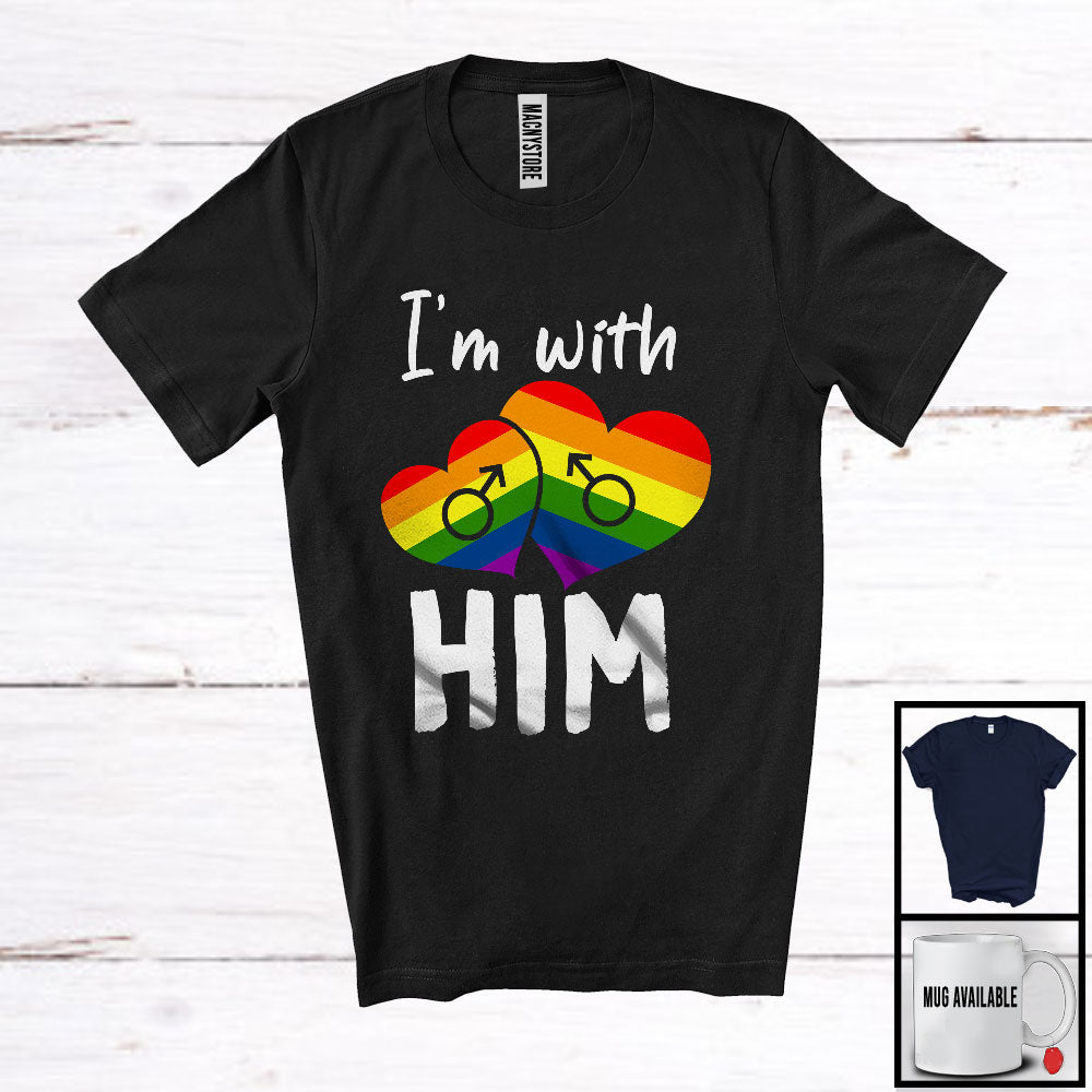 I'm With Him, Adorable LGBTQ Pride Gay Lesbian Rainbow Hearts, Matching Couple LGBT Pride T-Shirt