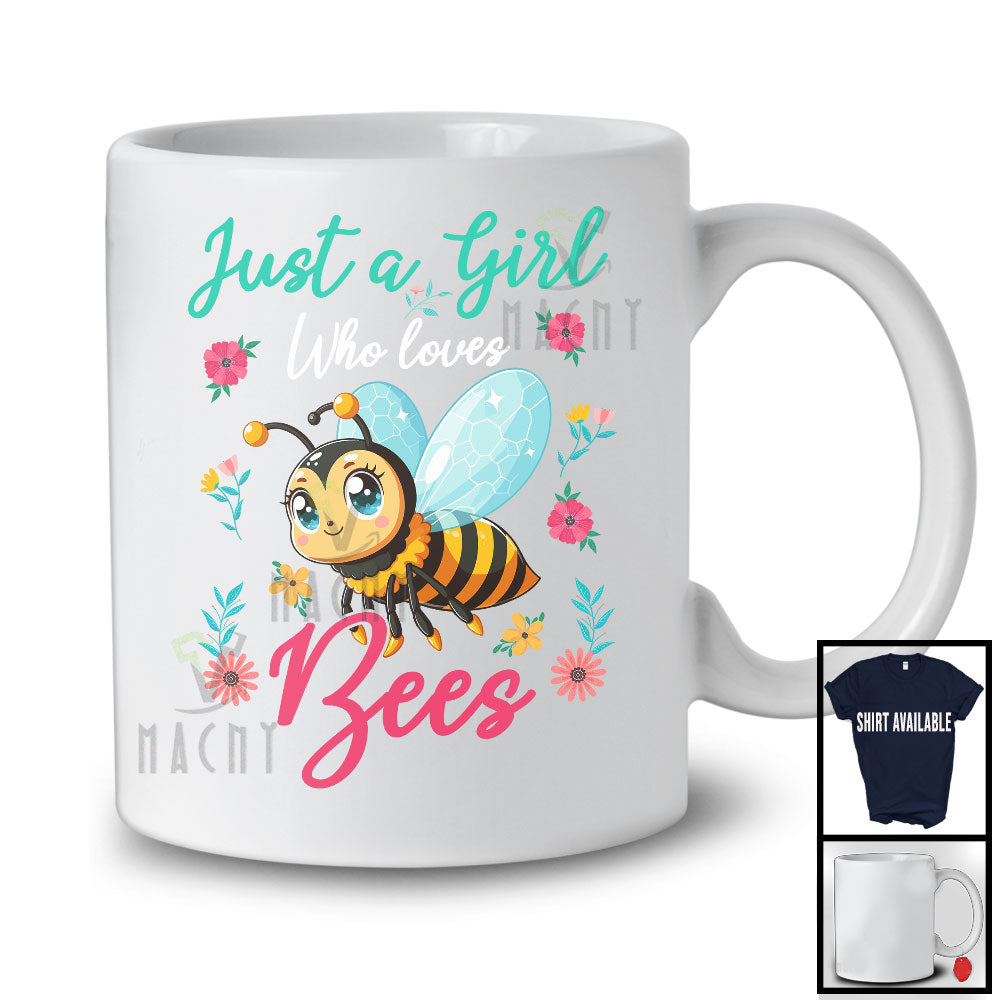 new MacnyStore - Just A Girl Who Loves Bees, Colorful Summer Vacation Flowers Bees, Insects Lover T-Shirt – Macnystore