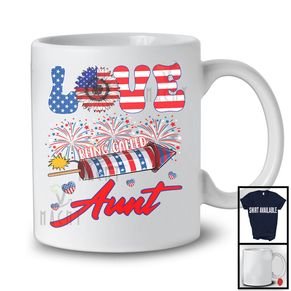 Love Being Called Aunt, Cheerful 4th Of July American Flag Firecracker, Patriotic Family Group T-Shirt