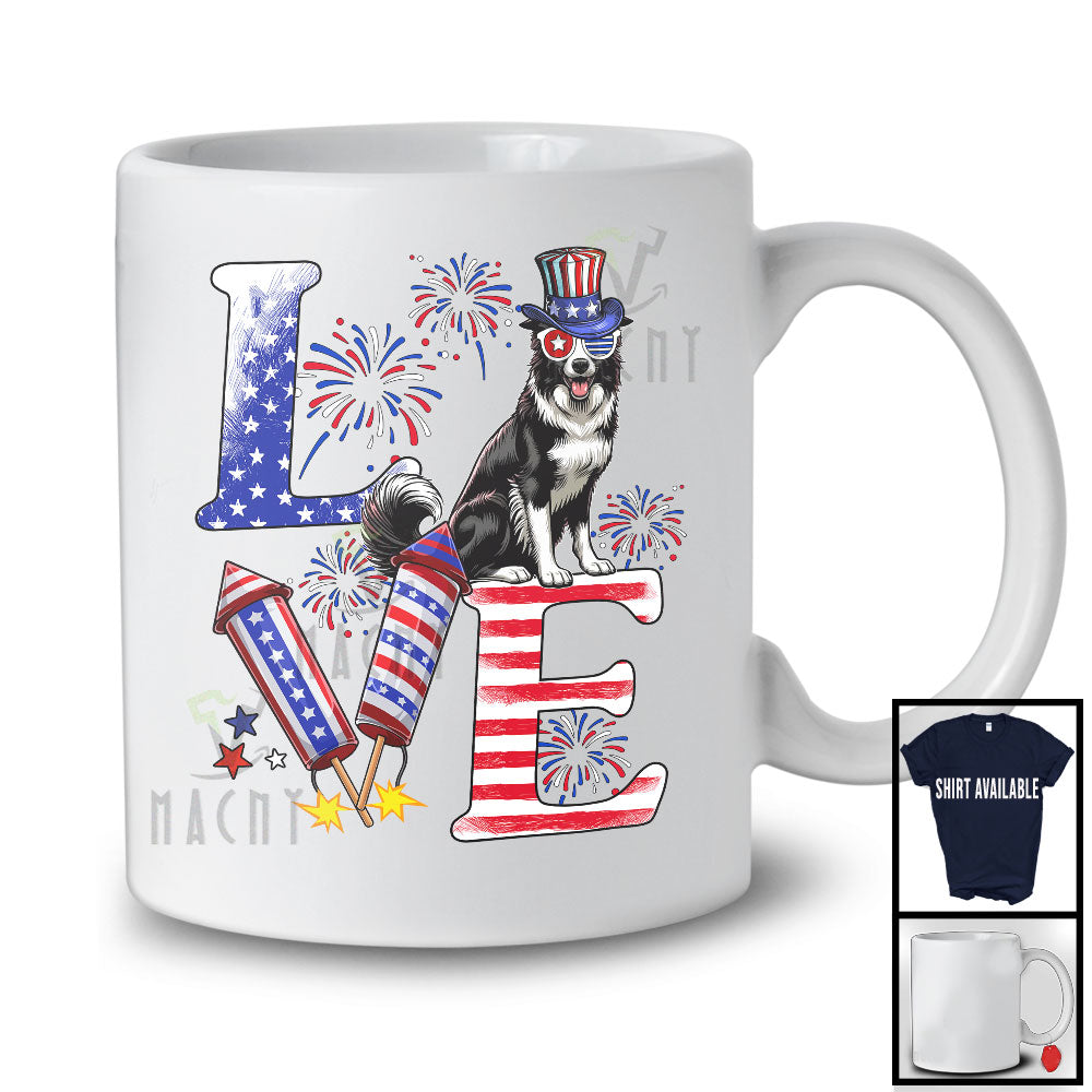 • Love, Proud 4th Of July Border Collie American Flag Fireworks Firecrackers, Patriotic Group T-Shirt. This cotton t-shirt is a durable staple product with a classic fit. One of the most popular items, it has a relaxed style made for everyday and casual wear.