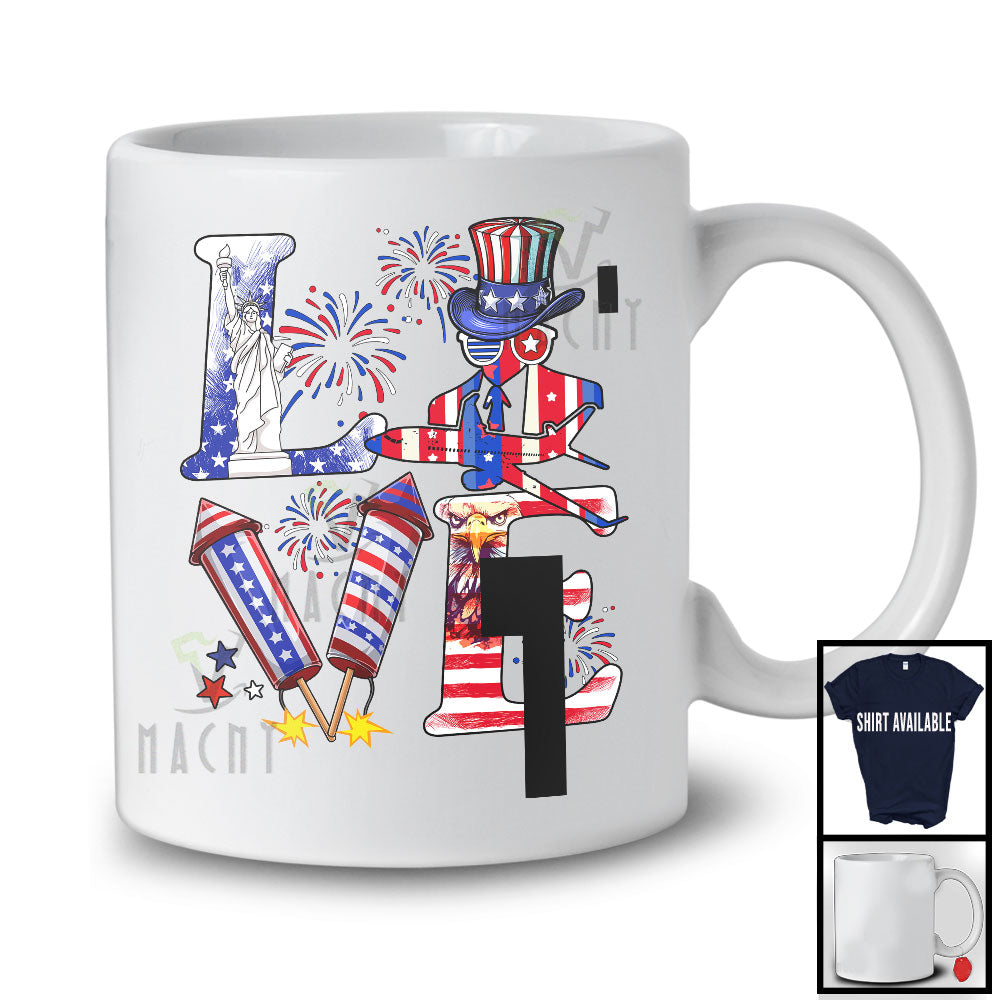 • LOVE, Proud 4th Of July Pilot Firecracker Fireworks, American Flag Patriotic Group T-Shirt. This cotton t-shirt is a durable staple product with a classic fit. One of the most popular items, it has a relaxed style made for everyday and casual wear.