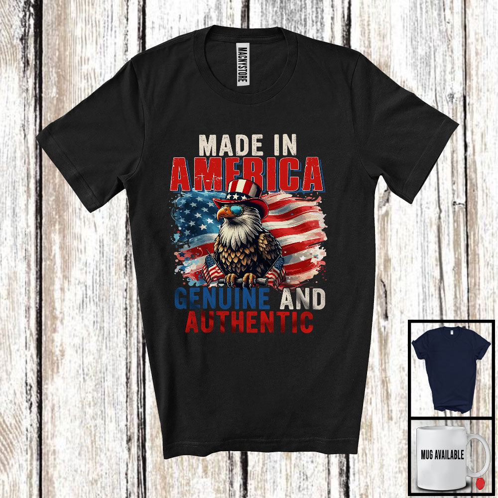 Made In America, Amazing 4th Of July Eagle Born In USA Flag, Patriotic Lover Family Group T-Shirt. This cotton t-shirt is a durable staple product with a classic fit. One of the most popular items, it has a relaxed style made for everyday and casual wear.