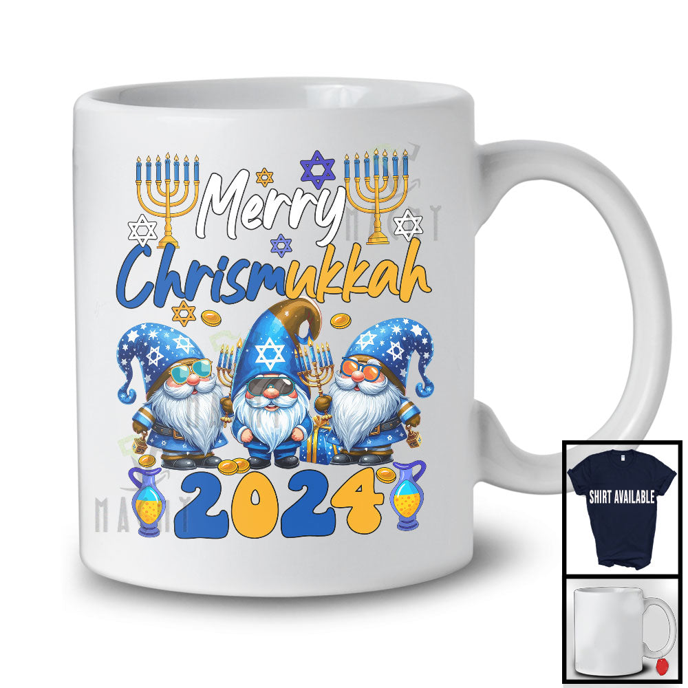 Merry Chrismukkah 2024; Awesome Christmas Hanukkah Three Gnomes Gnomies; Family Group T-Shirt. This cotton t-shirt is a durable staple product with a classic fit. One of the most popular items, it has a relaxed style made for everyday and casual wear.