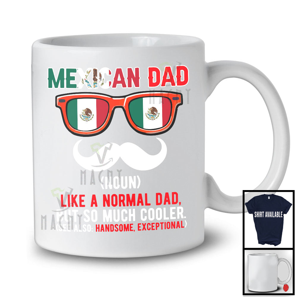 • Mexican Dad Definition Much Cooler, Amazing Father's Day Dad Proud Sunglasses, Family Group T-Shirt. This cotton t-shirt is a durable staple product with a classic fit. One of the most popular items, it has a relaxed style made for everyday and casual wear.