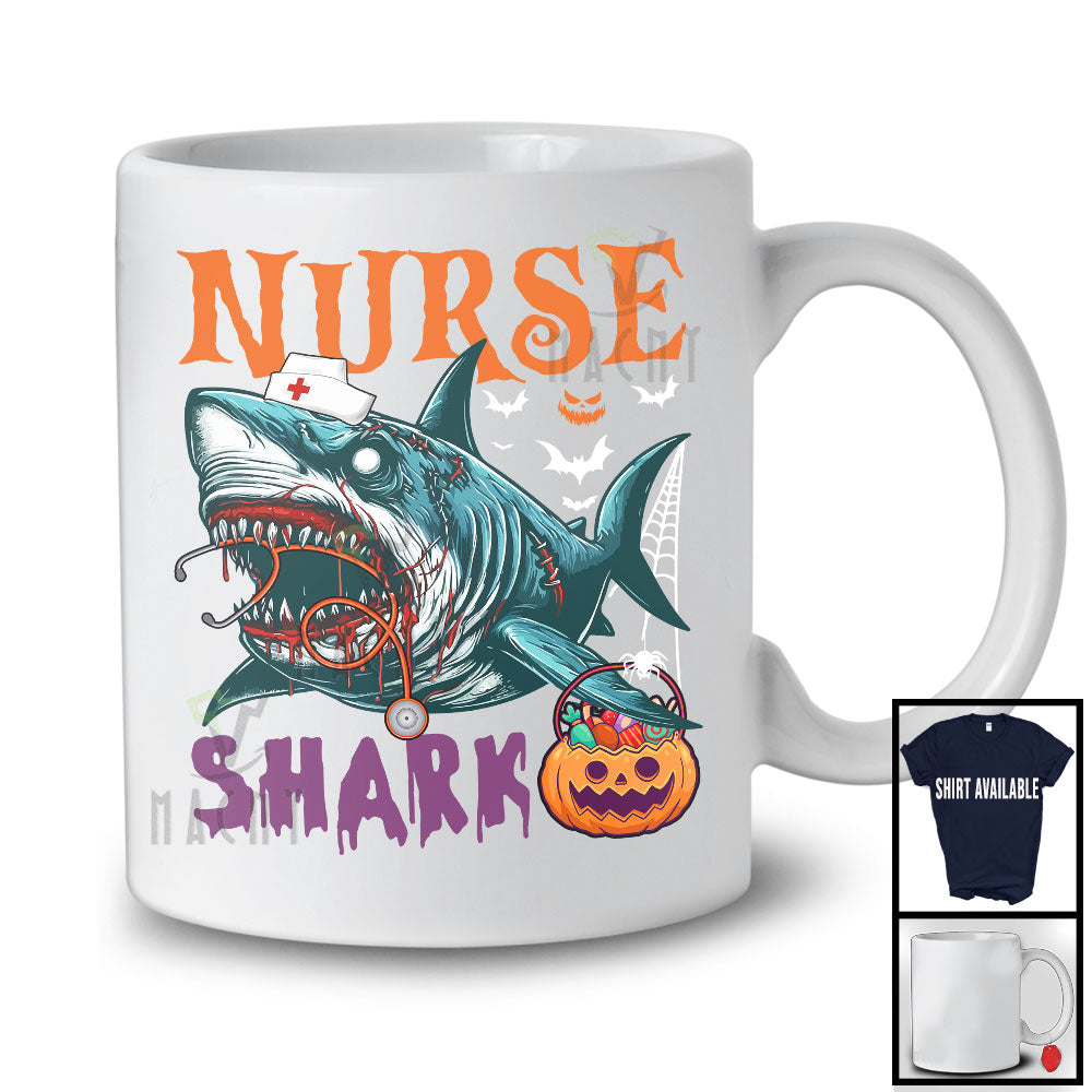 new MacnyStore - Nurse Shark, Scary Halloween Costume Pumpkin Zombie Shark, Proud Careers Group T-Shirt – Macnystore