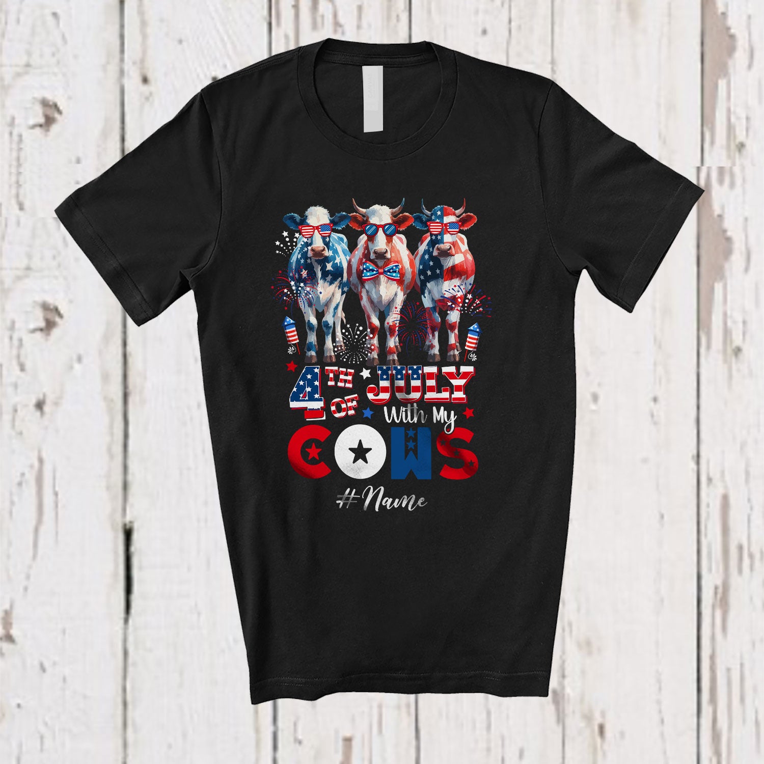 Personalized 4th of July My With Cows; Proud Custom Name Farmer Three Cows; Patriotic T-Shirt