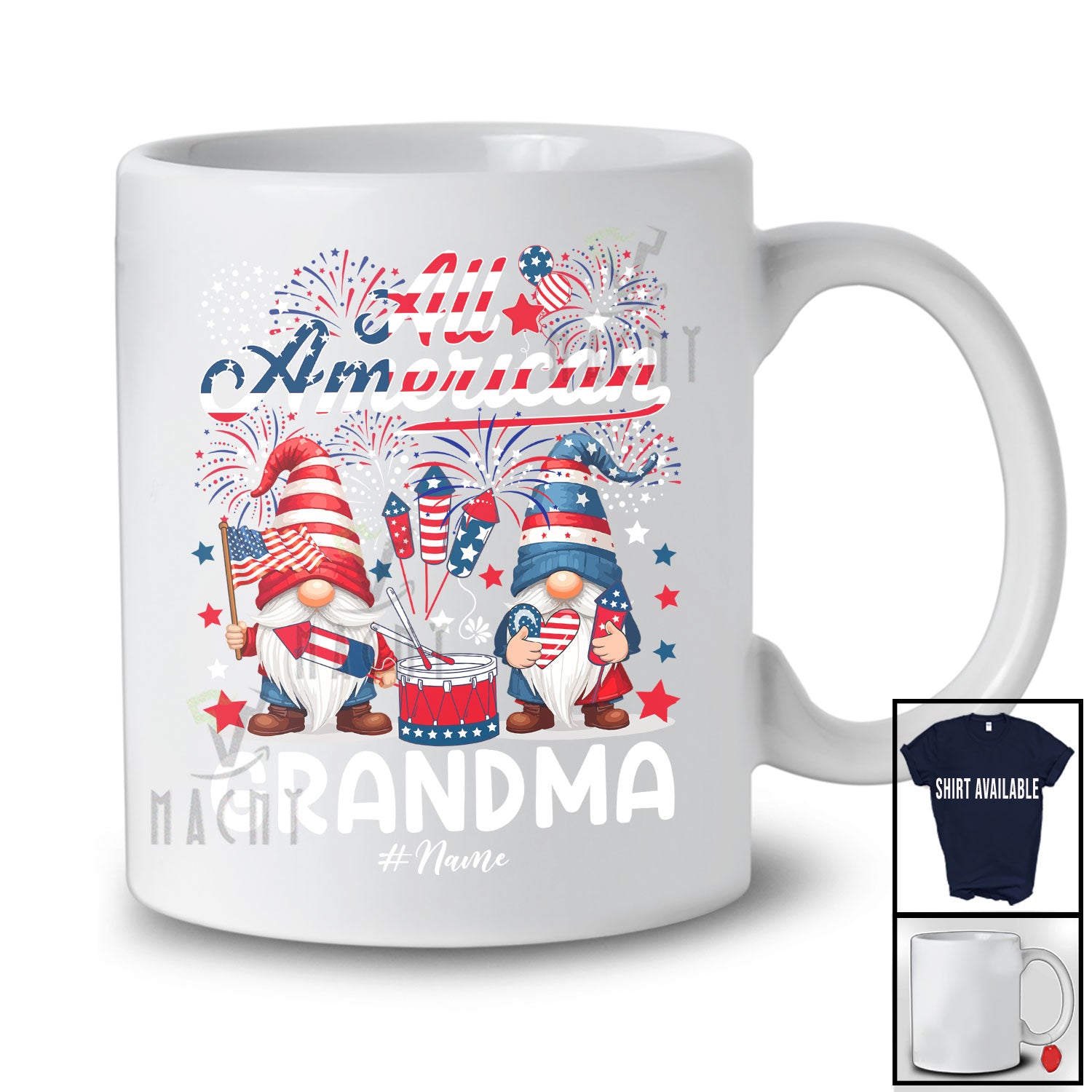 Personalized All American Grandma; Proud 4th Of July US Flag Fireworks; Custom Name Patriotic T-Shirt. This cotton t-shirt is a durable staple product with a classic fit. One of the most popular items, it has a relaxed style made for everyday and casual wear.