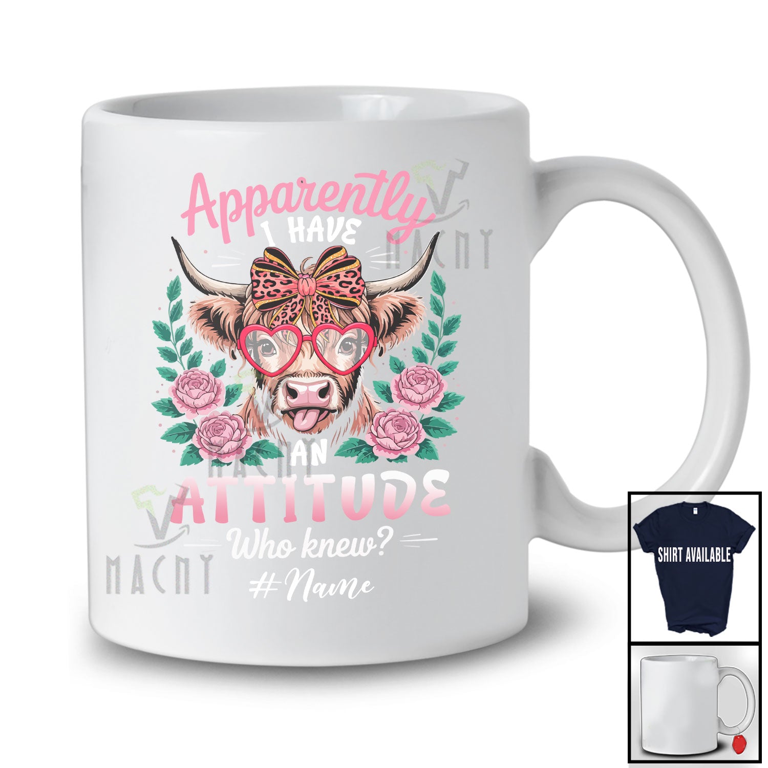This Personalized Apparently I Have An Attitude; Lovely Floral Highland Cattle Cow Custom Name Farmer T-Shirt is great idea gift for your family, friends in this birthday, christmas, mother's day, father's day, patrick's day or any holiday.
