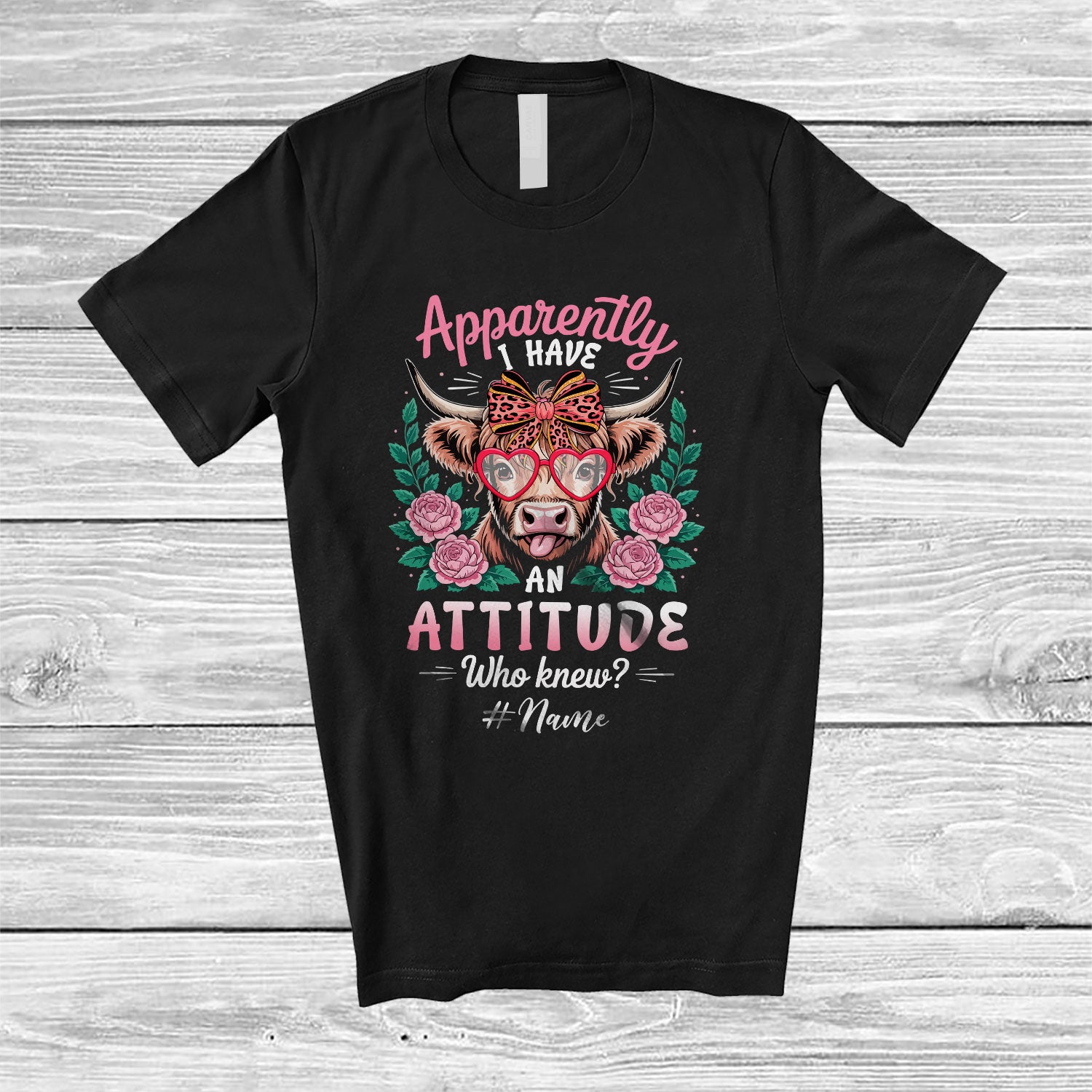 Personalized Apparently I Have An Attitude; Lovely Floral Highland Cattle Cow Custom Name Farmer T-Shirt