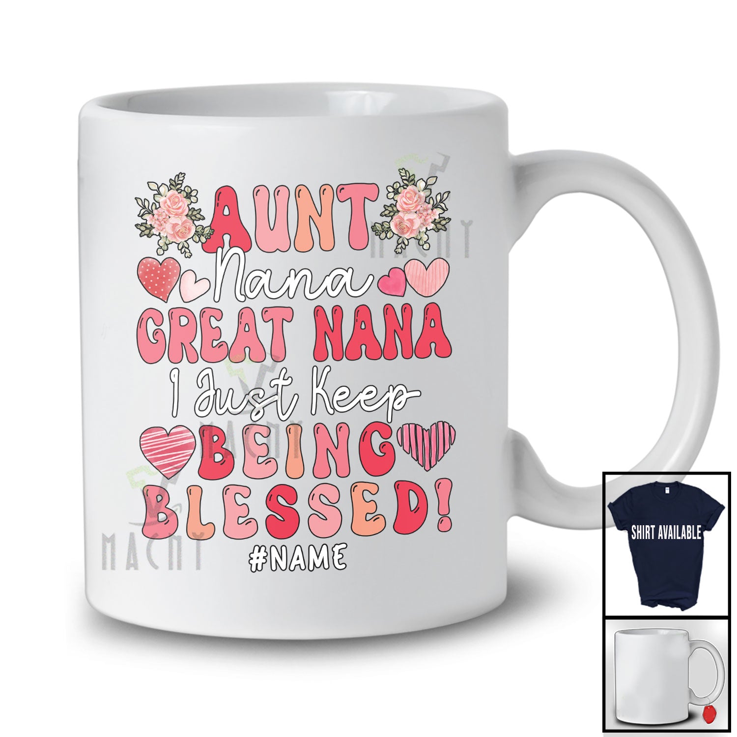 The Personalized Aunt Nana Great Nana Keep Blessed; Proud Mother's Day Hearts; Custom Name Family T-Shirt destined to impress, and priced at only $12.95, for a limited time.