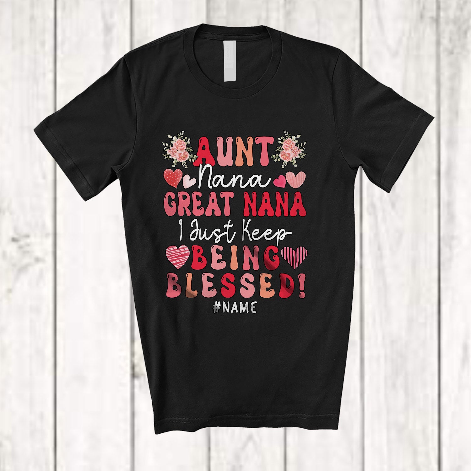 Personalized Aunt Nana Great Nana Keep Blessed; Proud Mother's Day Hearts; Custom Name Family T-Shirt