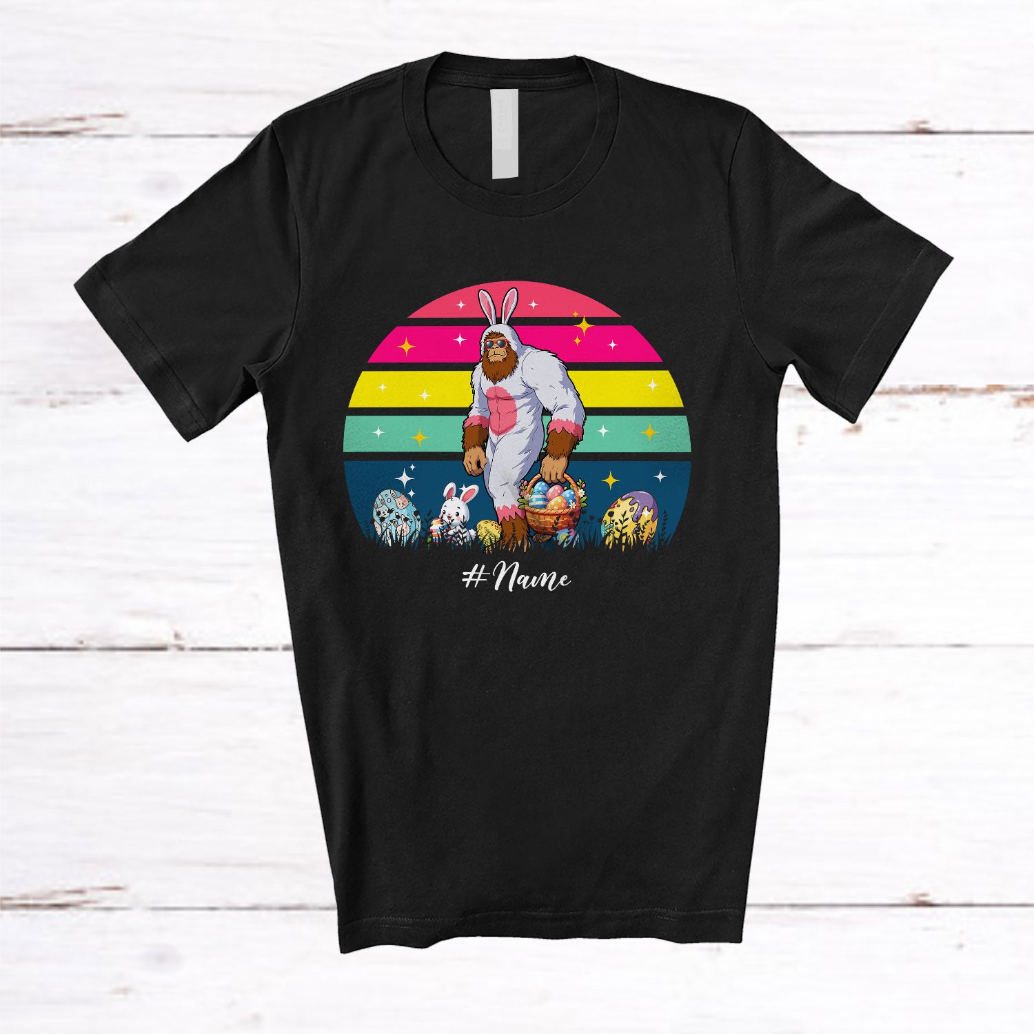 The Personalized Bunny Bigfoot With Egg Basket; Lovely Easter Custom Name Eggs Hunt; Retro T-Shirt was built with people like you in mind. Something to keep you happy. Every. Single. Day.
