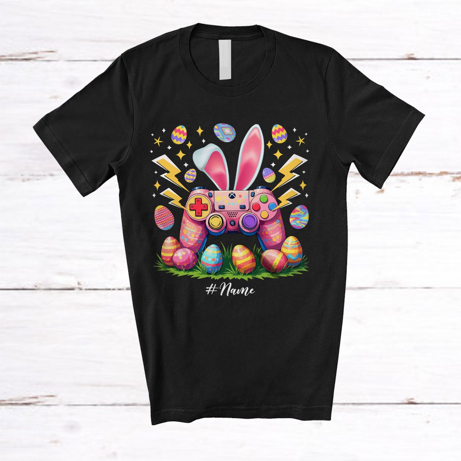 Personalized Bunny Video Games Controller; Colorful Easter Eggs; Custom Name Gamer Gaming T-Shirt