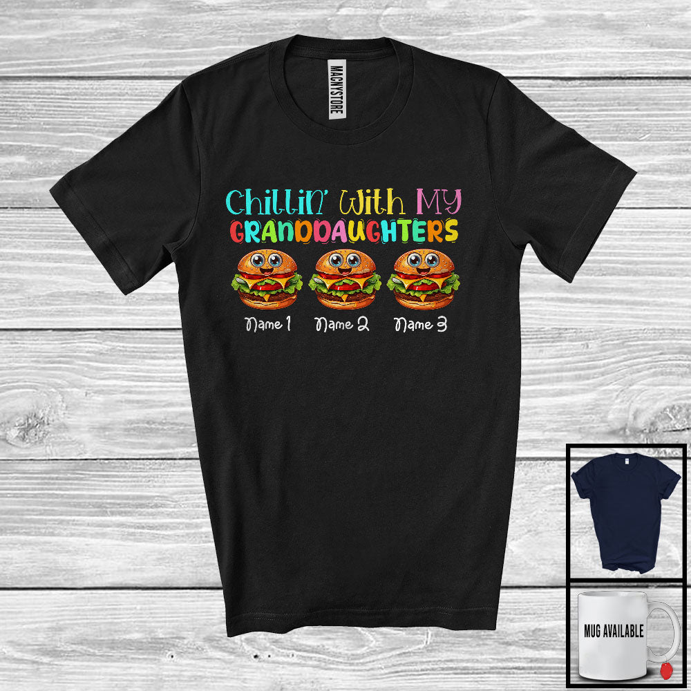Personalized Chillin' With My Granddaughters; Lovely Three Hamburger Custom Name; Food Lover T-Shirt