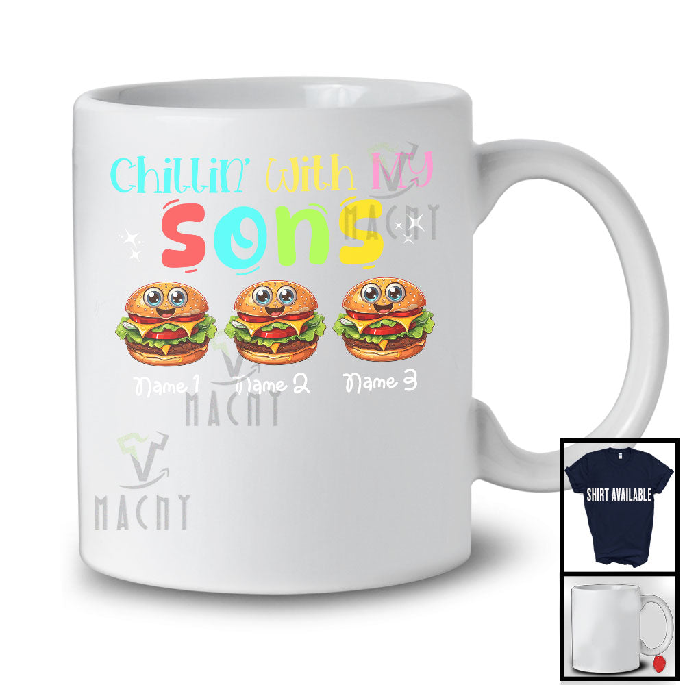 The Personalized Chillin' With My Son; Lovely Three Hamburger Custom Name; Food Lover T-Shirt was built with people like you in mind. Something to keep you happy. Every. Single. Day.
