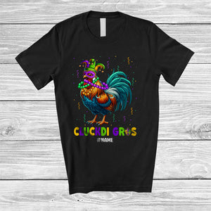 The Personalized Cluckdi Gras; Humorous Mardi Gras Mask Beads Rooster Farmer; Custom Name Parades T-Shirt is evocative, to say the least, but that's why you're drawn to it in the first place.