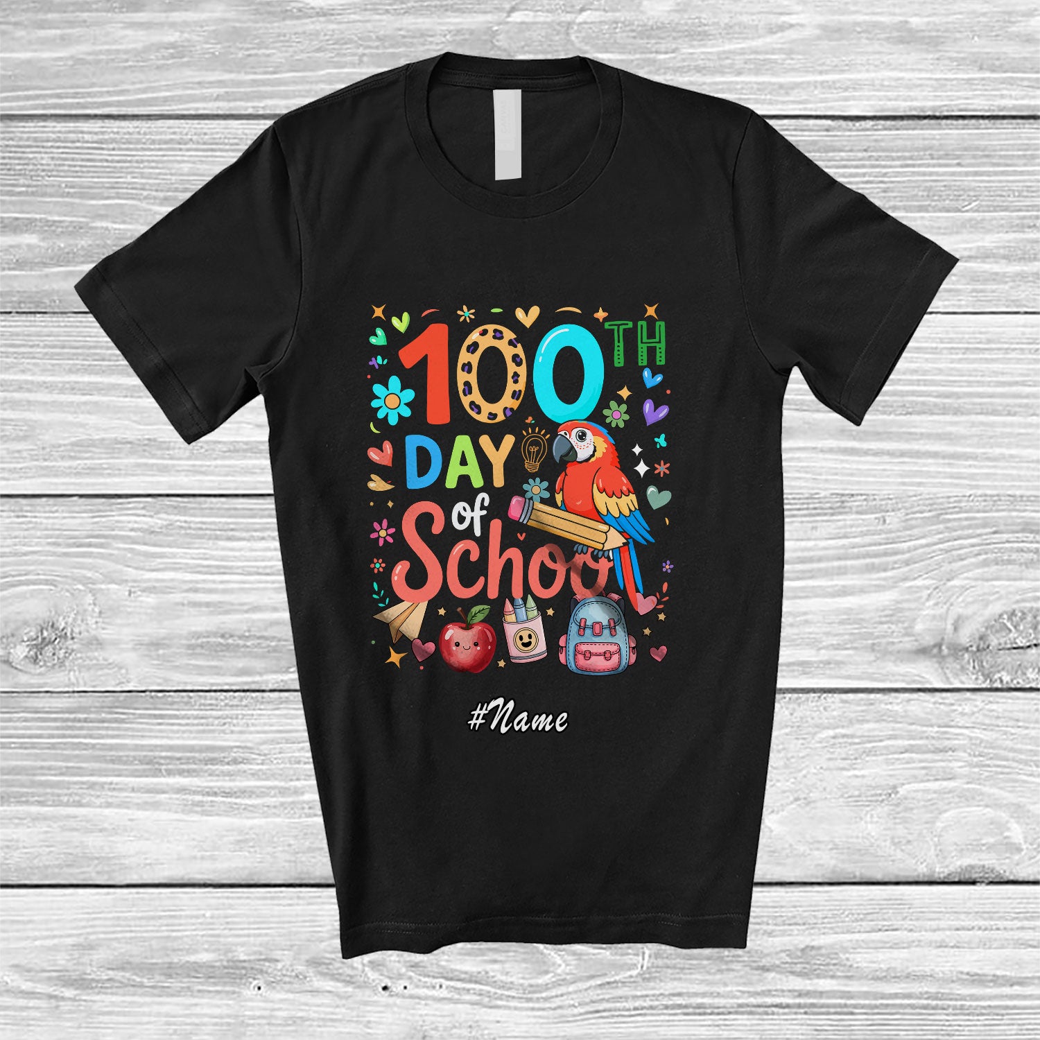 • The Personalized Custom Name 100th Day Of School; Adorable Macaw With Pencil; Teacher Students T-Shirt was built with people like you in mind. Something to keep you happy. Every. Single. Day.