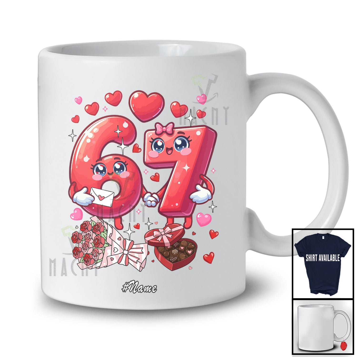 • Personalized Custom Name 6 7; Adorable Valentine's Day Six Seven Hearts Flowers Couple Lover T-Shirt. This cotton t-shirt is a durable staple product with a classic fit. One of the most popular items, it has a relaxed style made for everyday and casual wear.