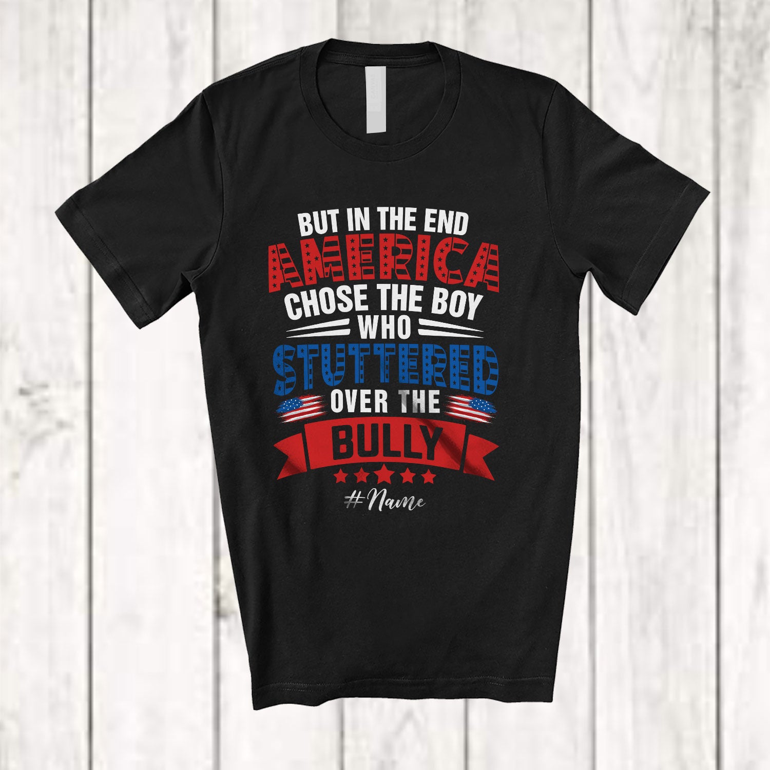 • The Personalized Custom Name America Chose The Boy Stuttered; Proud 4th Of July US Flag; Patriotic T-Shirt is evocative, to say the least, but that's why you're drawn to it in the first place.
