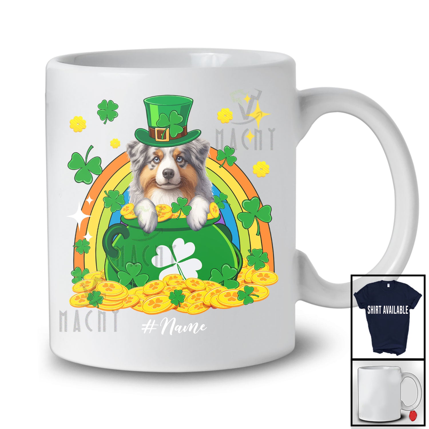 This Personalized Custom Name Australian Shepherd In Pot Of Gold; Lovely St. Patrick's Day Rainbow T-Shirt is great idea gift for your family, friends in this birthday, christmas, mother's day, father's day, patrick's day or any holiday.