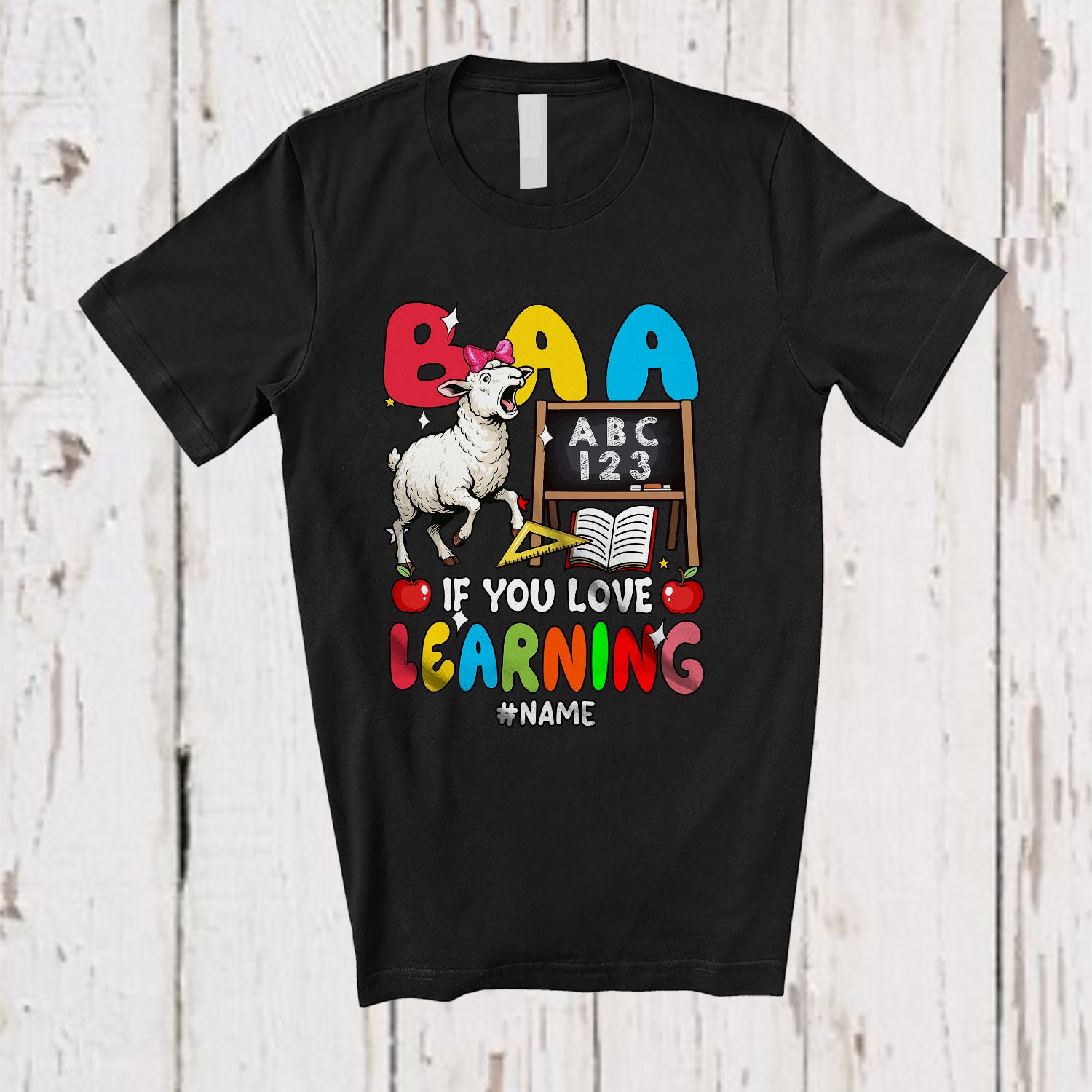 This Personalized Custom Name Baa If You Love Learning; Lovely Back To School Sheep Teacher T-Shirt is great idea gift for your family, friends in this birthday, christmas, mother's day, father's day, patrick's day or any holiday.