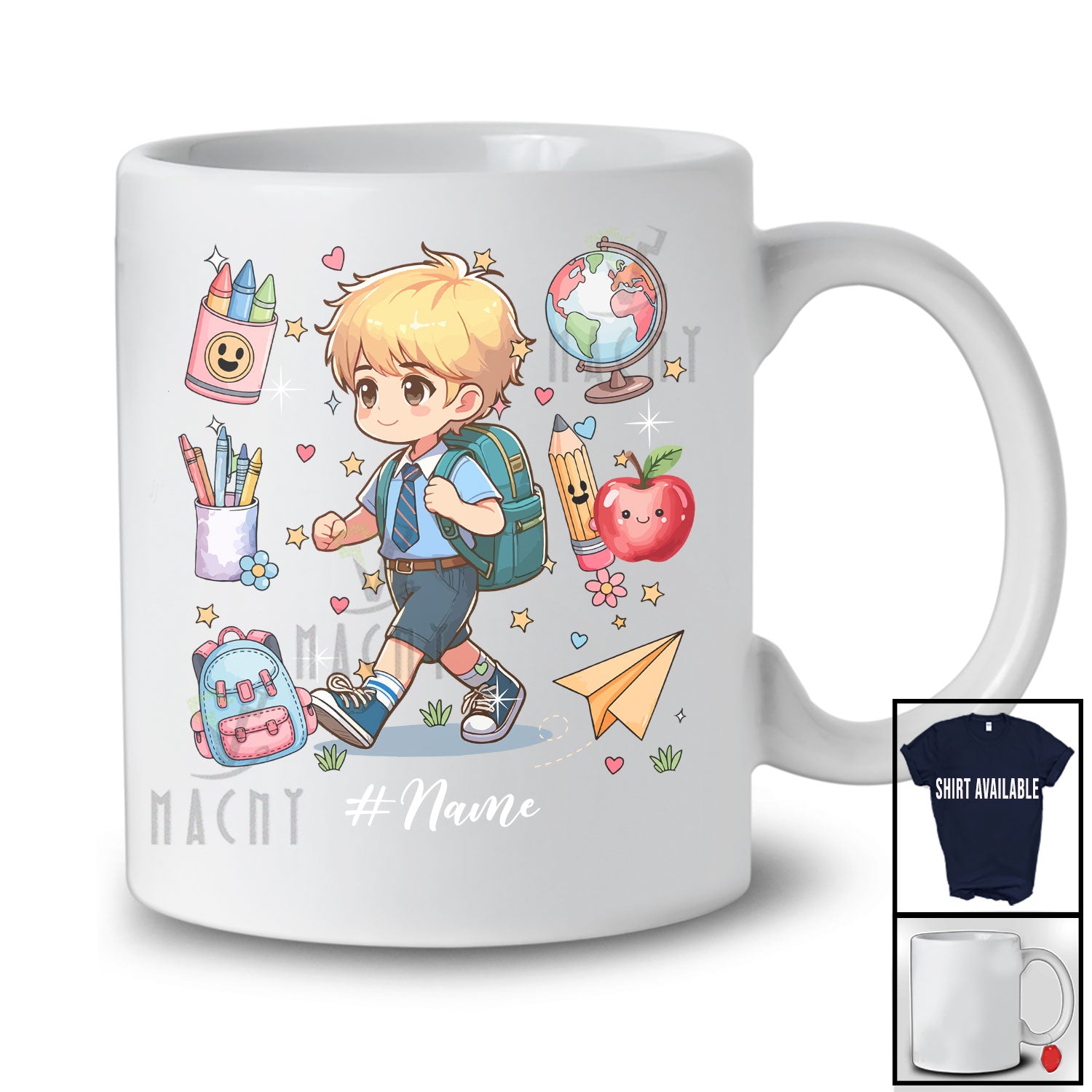 Personalized Custom Name Back To School Students Boys; Adorable First Day of School Tools T-Shirt. This cotton t-shirt is a durable staple product with a classic fit. One of the most popular items, it has a relaxed style made for everyday and casual wear.