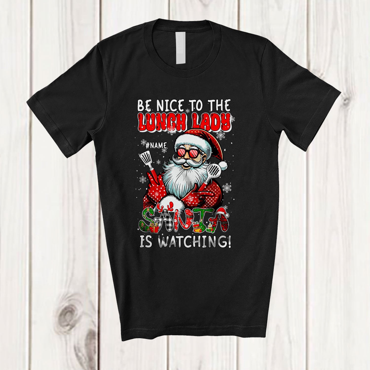 Personalized Custom Name Be Nice To The Lunch Lady; Amusing Christmas Santa Naughty; Family T-Shirt