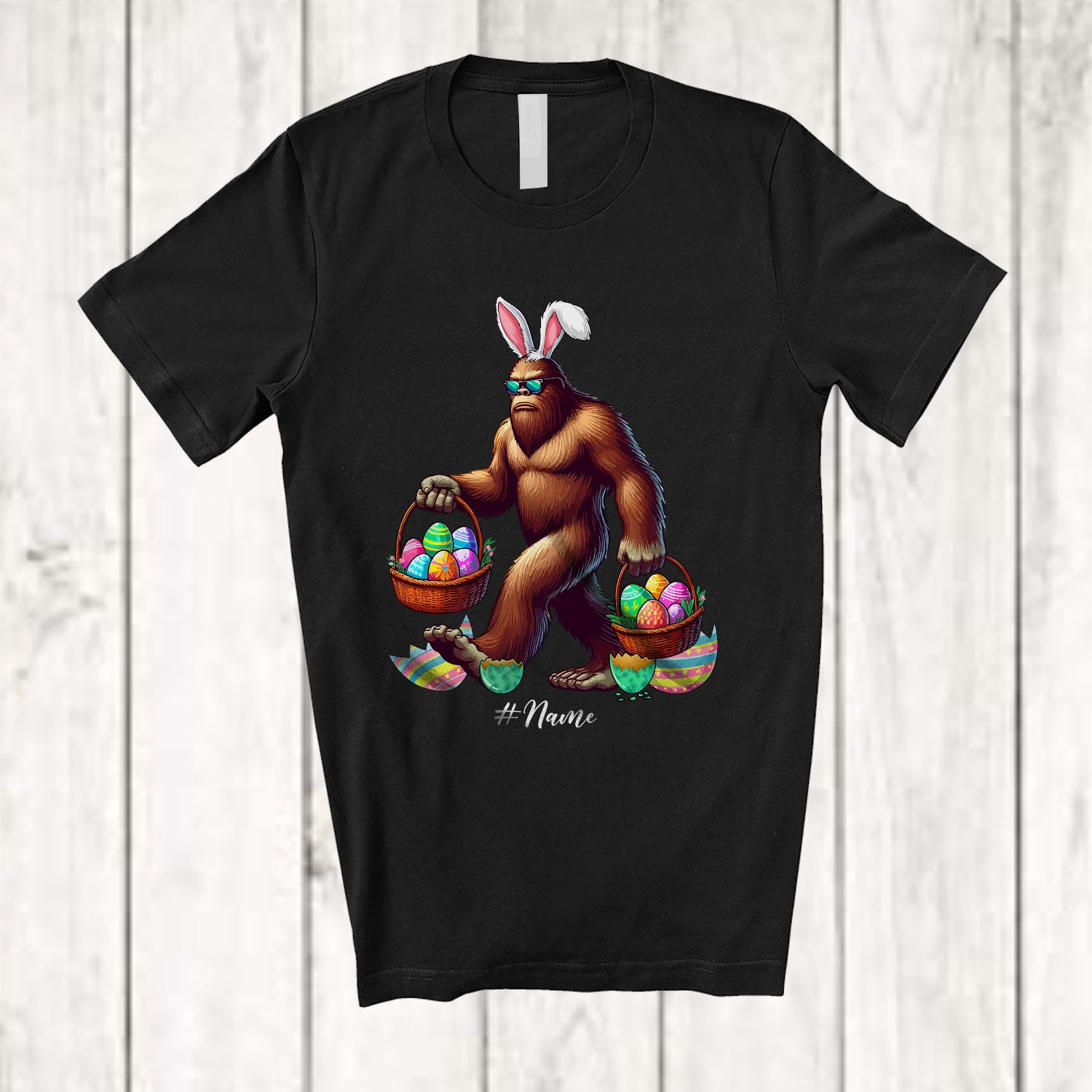 Personalized Custom Name Bigfoot Bunny With Egg Basket; Humorous Easter Eggs Hunting T-Shirt