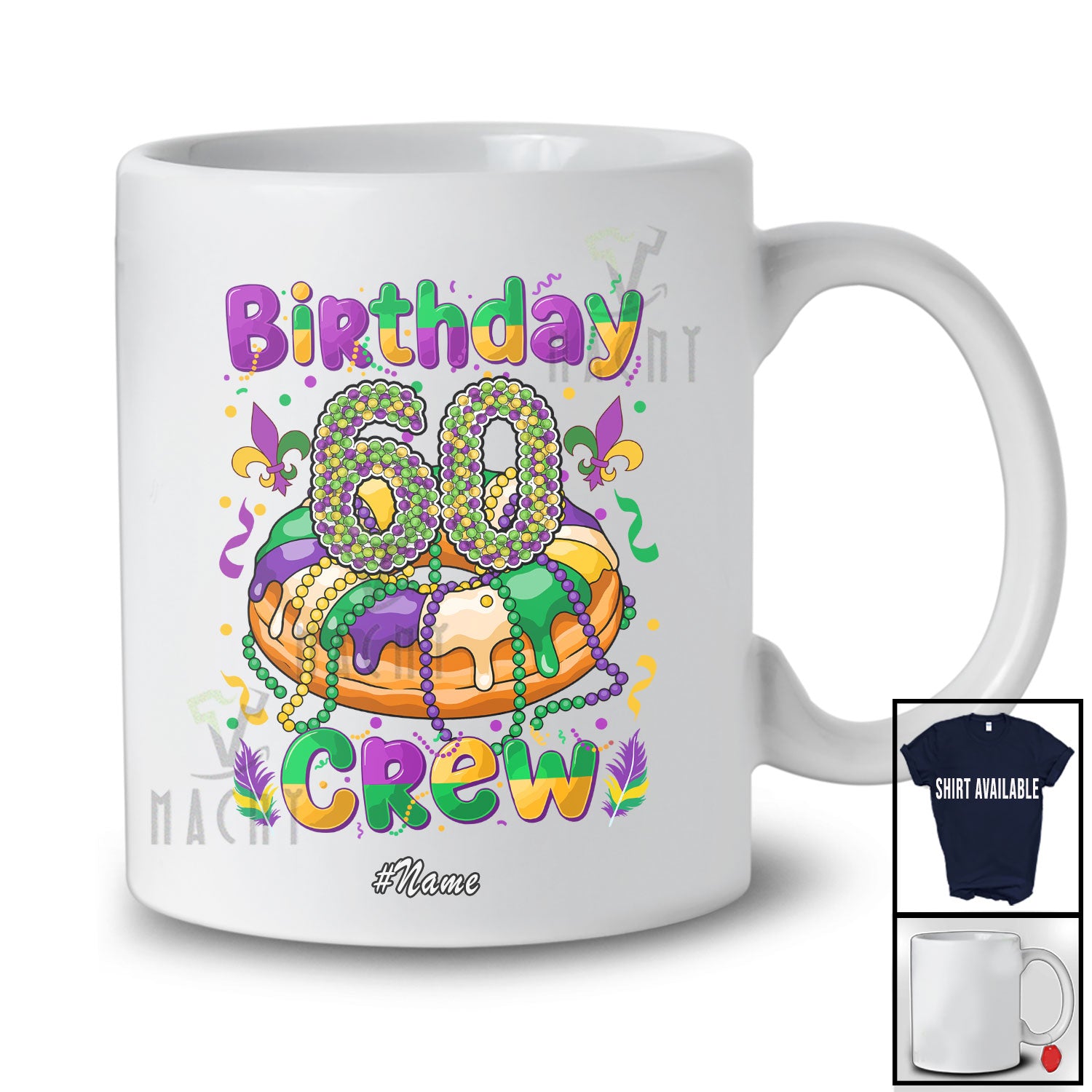 • Personalized Custom Name Birthday 60th Crew; Joyful Birthday Mardi Gras Breads King Cake T-Shirt. This cotton t-shirt is a durable staple product with a classic fit. One of the most popular items, it has a relaxed style made for everyday and casual wear.