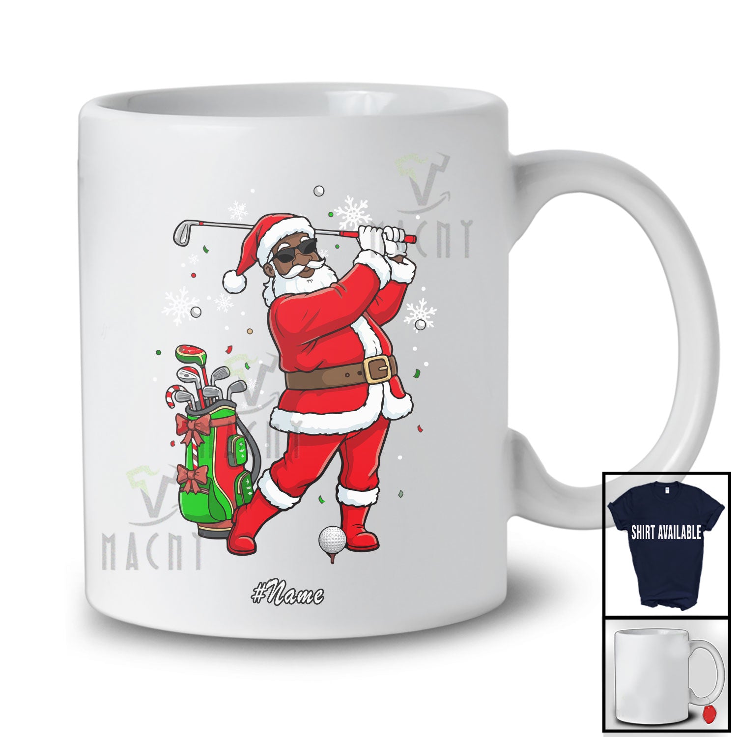 Imagine if you could be satisfied and content with your purchase. That can very much be your reality with the Personalized Custom Name Black African Santa Playing Golf; Joyful Christmas Afro Player T-Shirt.