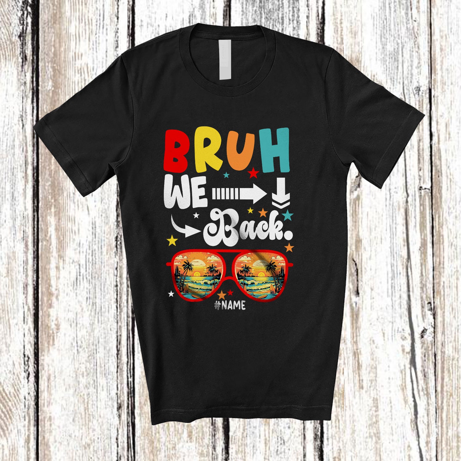 Personalized Custom Name Bruh We Back; Joyful Back To School First Day Of School Summer Sunglasses T-Shirt