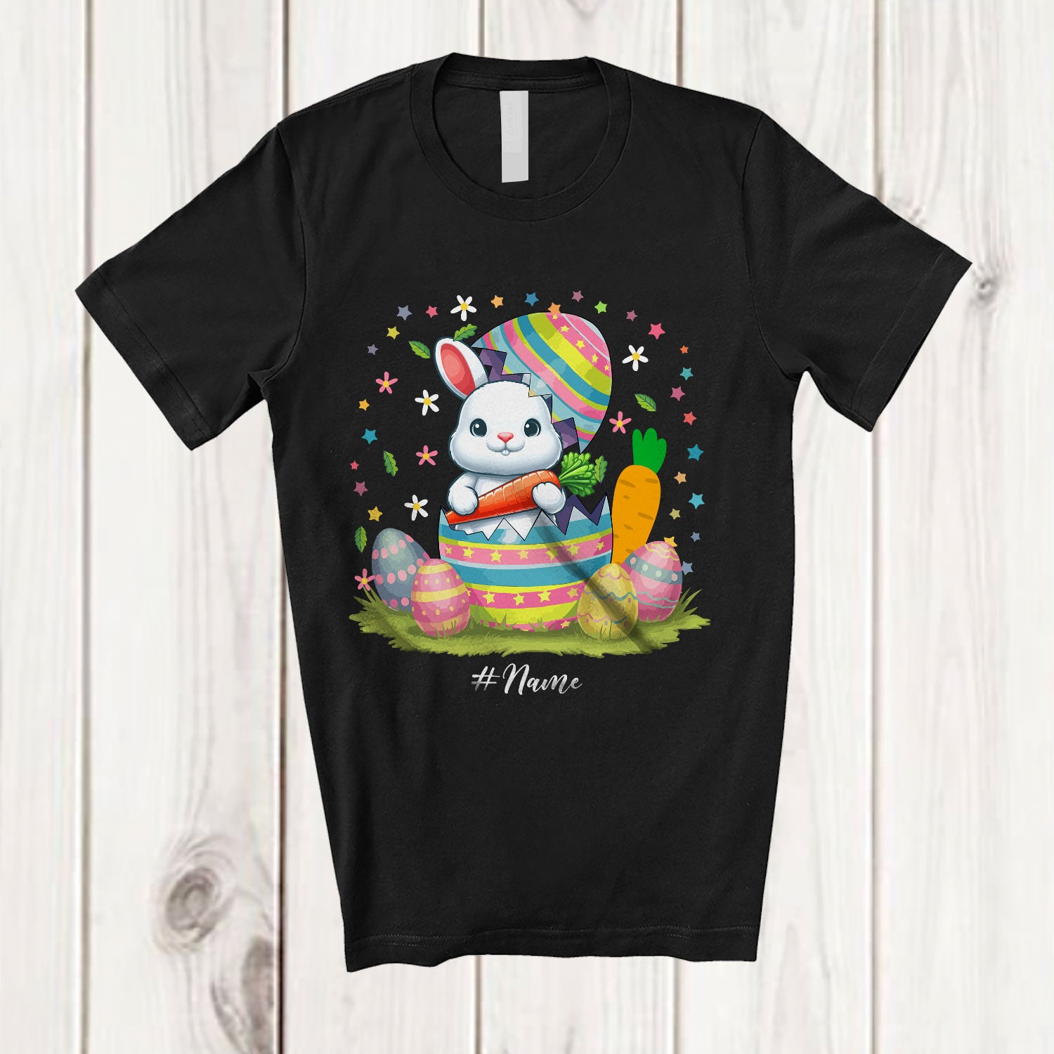Personalized Custom Name Bunny In Broken Easter Egg; Lovely Easter Egg Hunting; Family T-Shirt