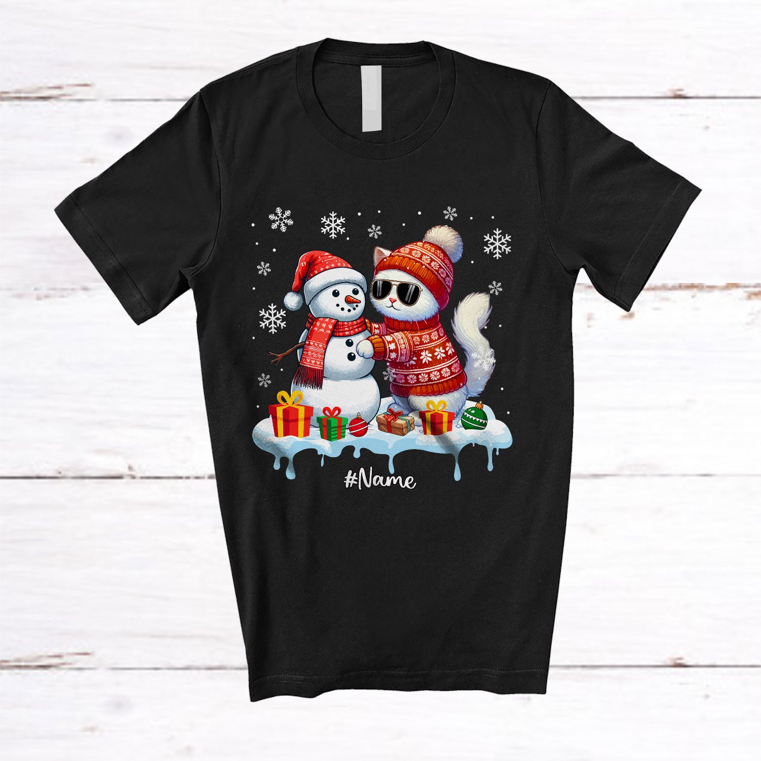 The Personalized Custom Name Cat Build Snowman; Lovely Snow Santa Cat; Family T-Shirt is far and away, one of our most popular items. People can't seem to get enough of it.