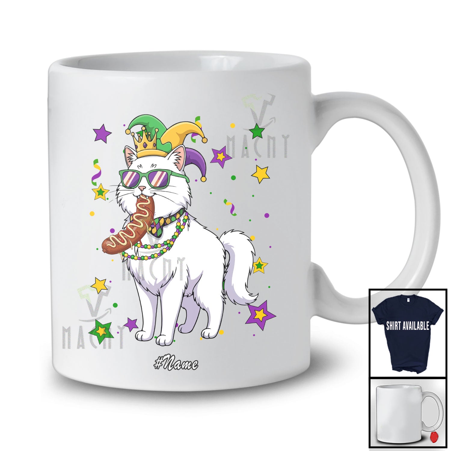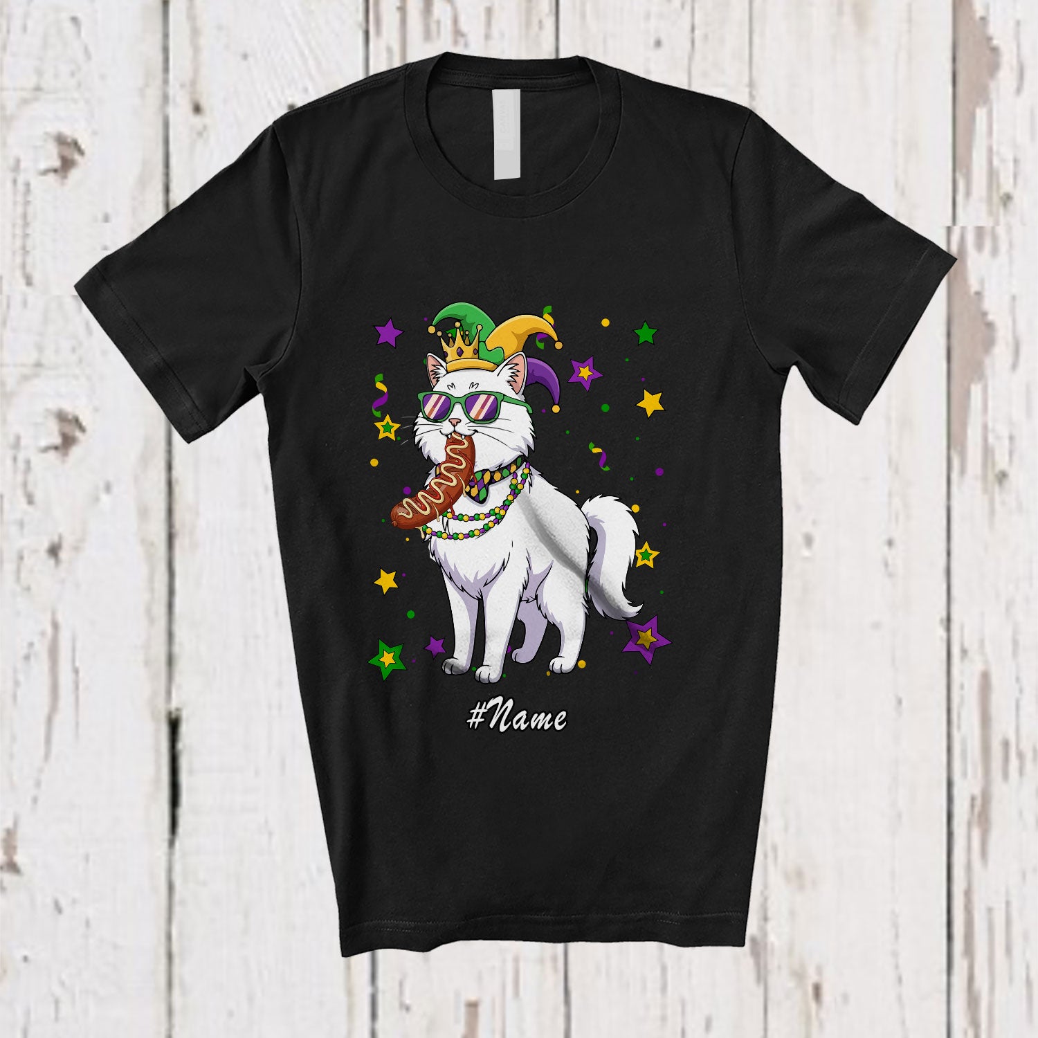 new MacnyStore - Personalized Custom Name Cat Sunglasses Eating Sausage; Joyful Mardi Gras Beads Food T-Shirt – Macnystore