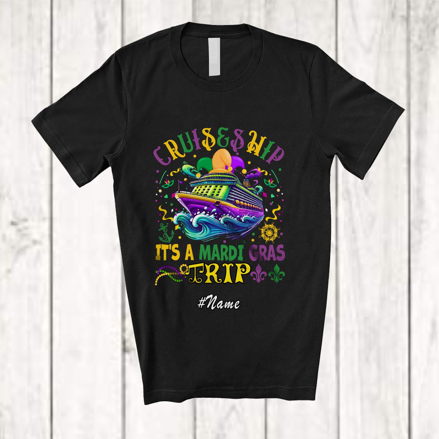 • Personalized Custom Name Cruise Ship It's A Mardi Gras Trip; Joyful Beads Parade Group T-Shirt. This cotton t-shirt is a durable staple product with a classic fit. One of the most popular items, it has a relaxed style made for everyday and casual wear.