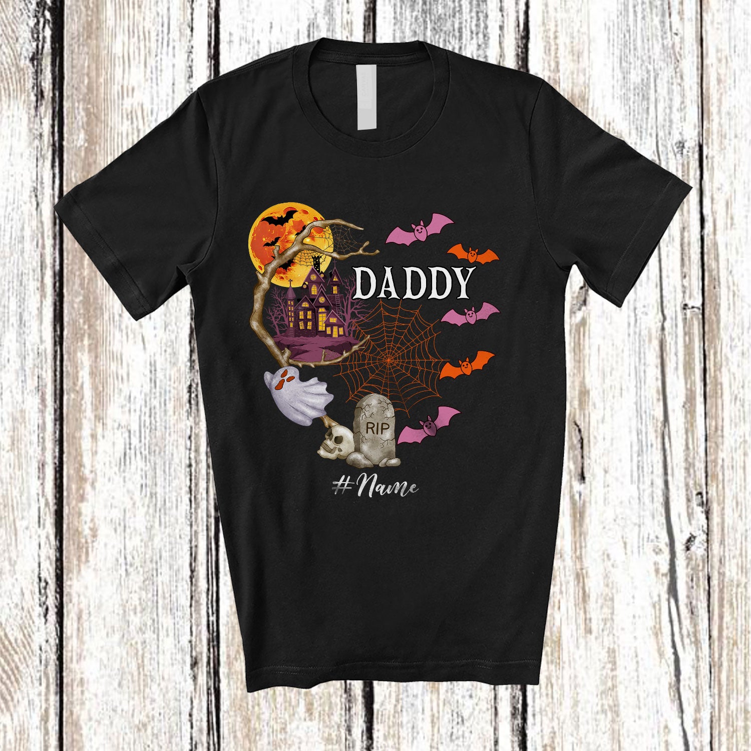 Personalized Custom Name Daddy; Horror Halloween Costume Moon Boo Ghost; Family Group T-Shirt