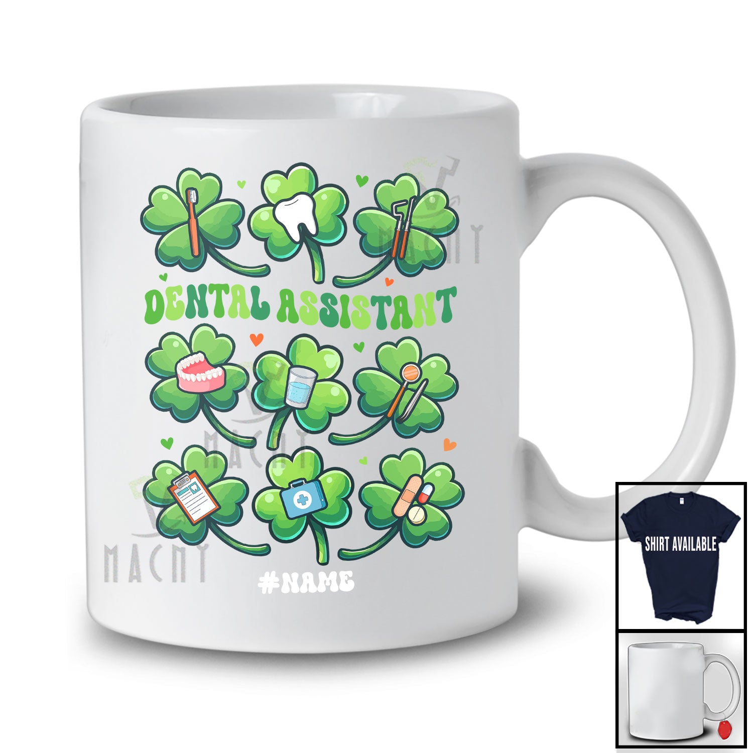 Personalized Custom Name Dental Assistant; Joyful St. Patrick's Day Lucky Shamrocks; Family T-Shirt. This cotton t-shirt is a durable staple product with a classic fit. One of the most popular items, it has a relaxed style made for everyday and casual wear.