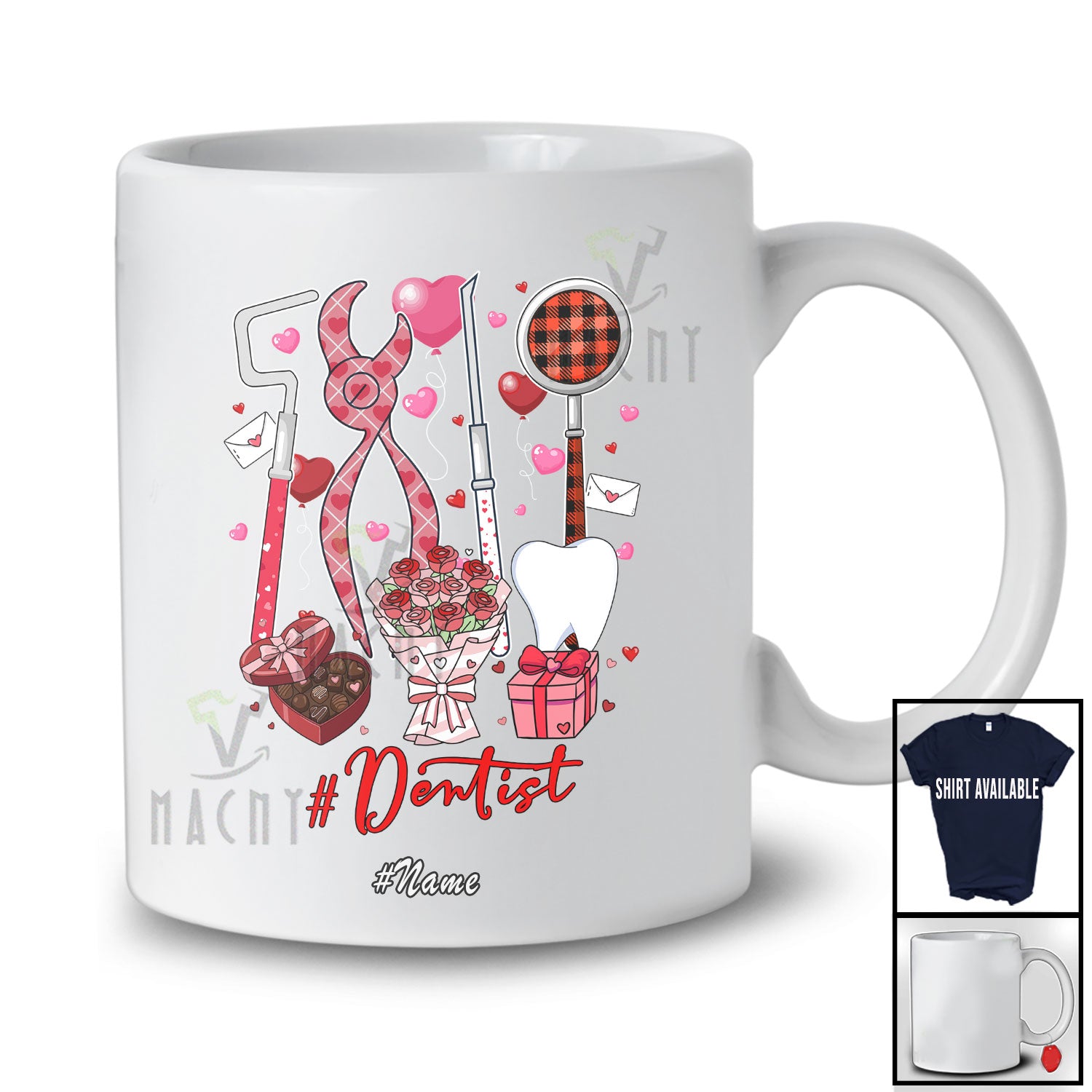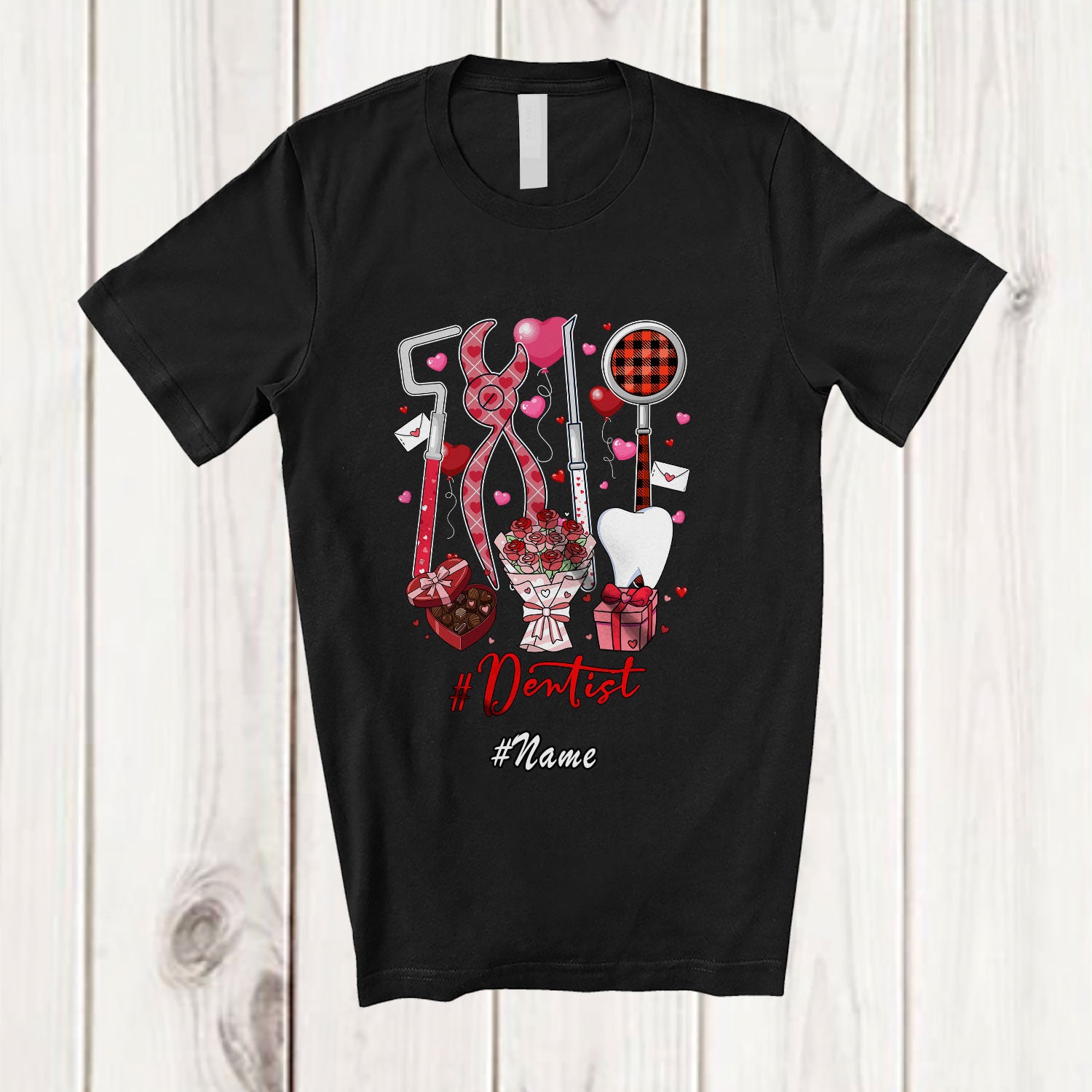 new MacnyStore - Personalized Custom Name Dentist; Lovely Flowers Hearts; Single Valentine Proud Jobs T-Shirt – Macnystore