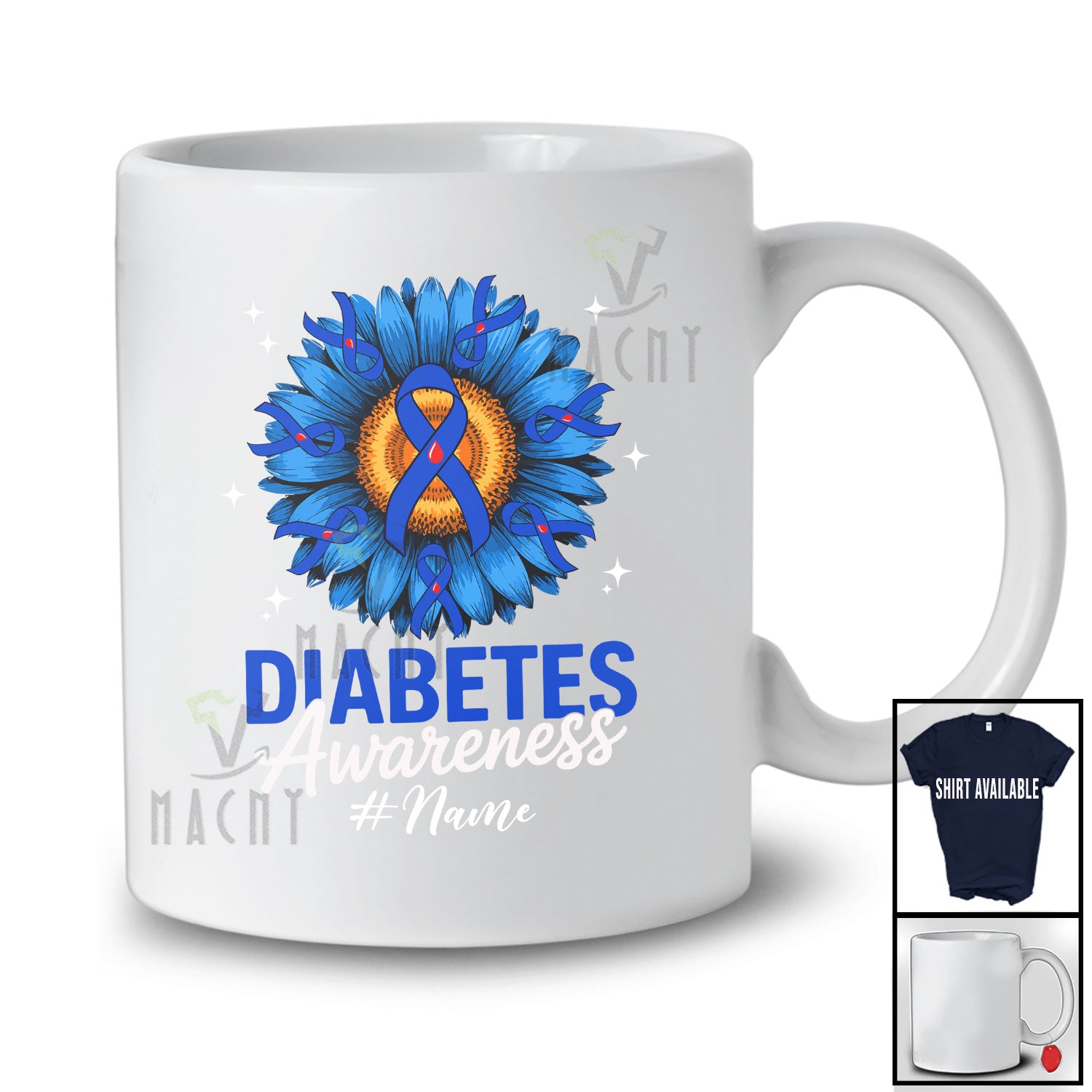 new MacnyStore - Personalized Custom Name Diabetes Awareness; Lovely Blue Ribbon Daisy Flower; Family Group T-Shirt – Macnystore