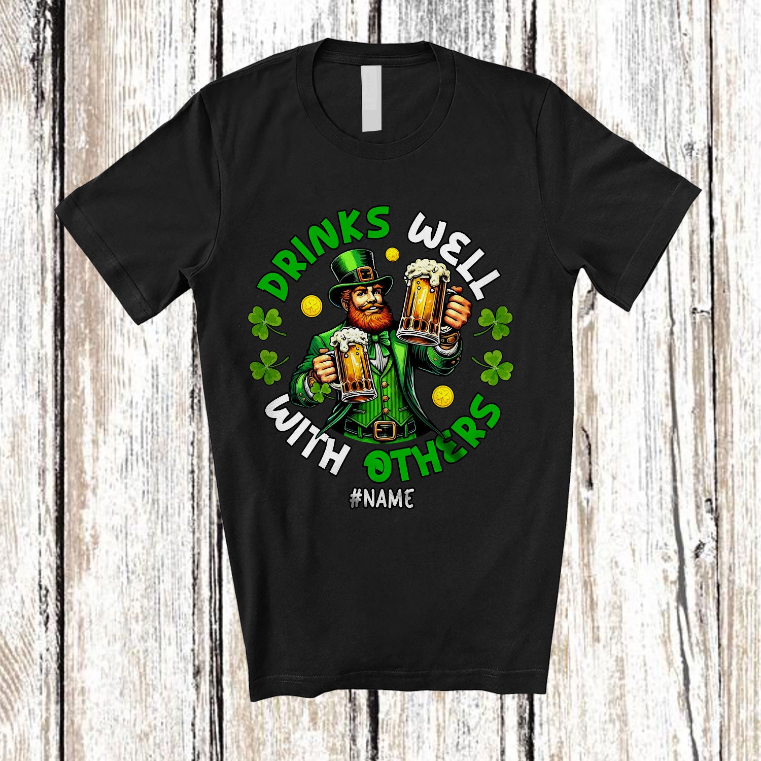 Personalized Custom Name Drinks Well With Others; Joyful St. Patrick's Day Leprechaun Drinking Beer T-Shirt