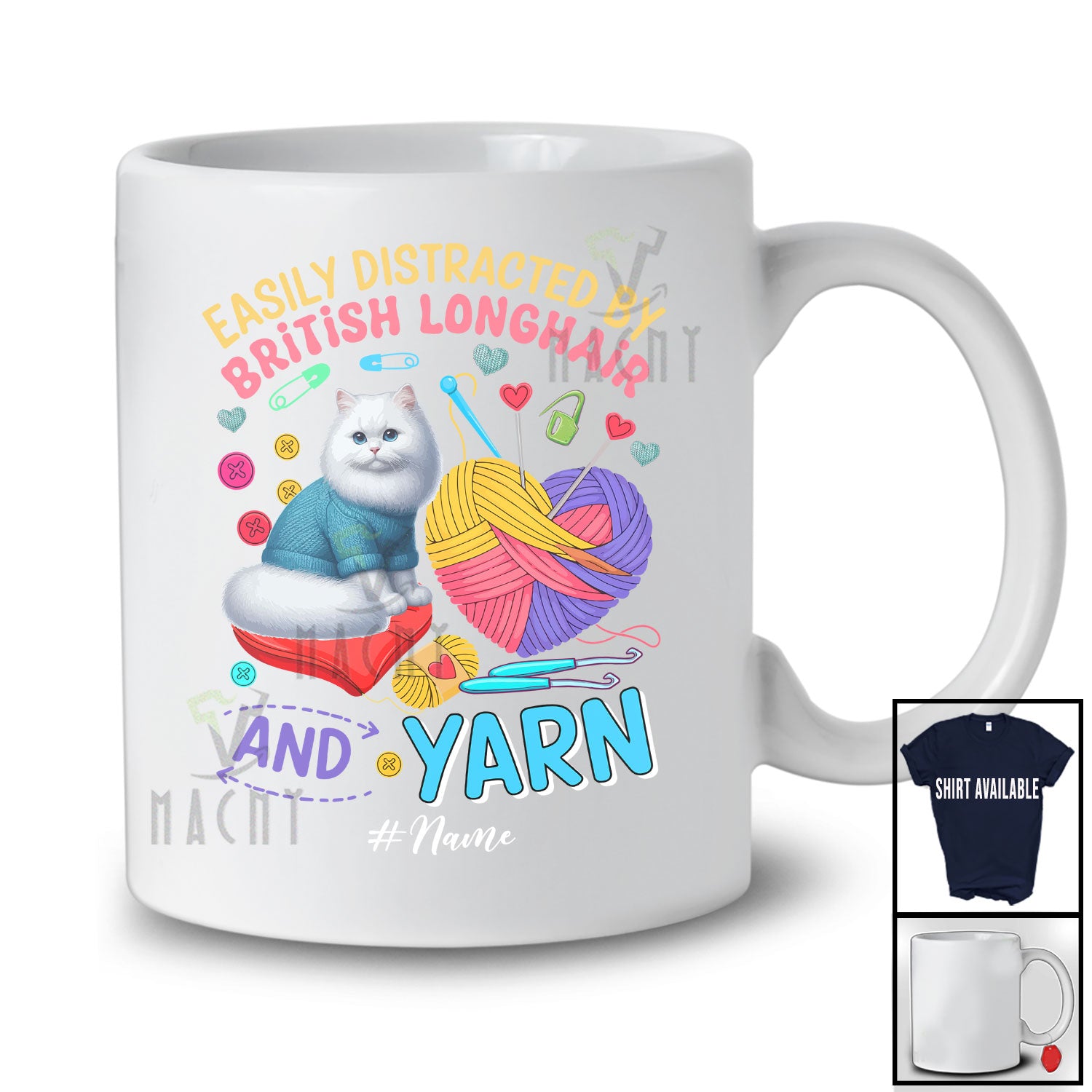 • Personalized Custom Name Easily Distracted By British Longhair And Yarn; Lovely Knitting Heart T-Shirt. This cotton t-shirt is a durable staple product with a classic fit. One of the most popular items, it has a relaxed style made for everyday and casual wear.