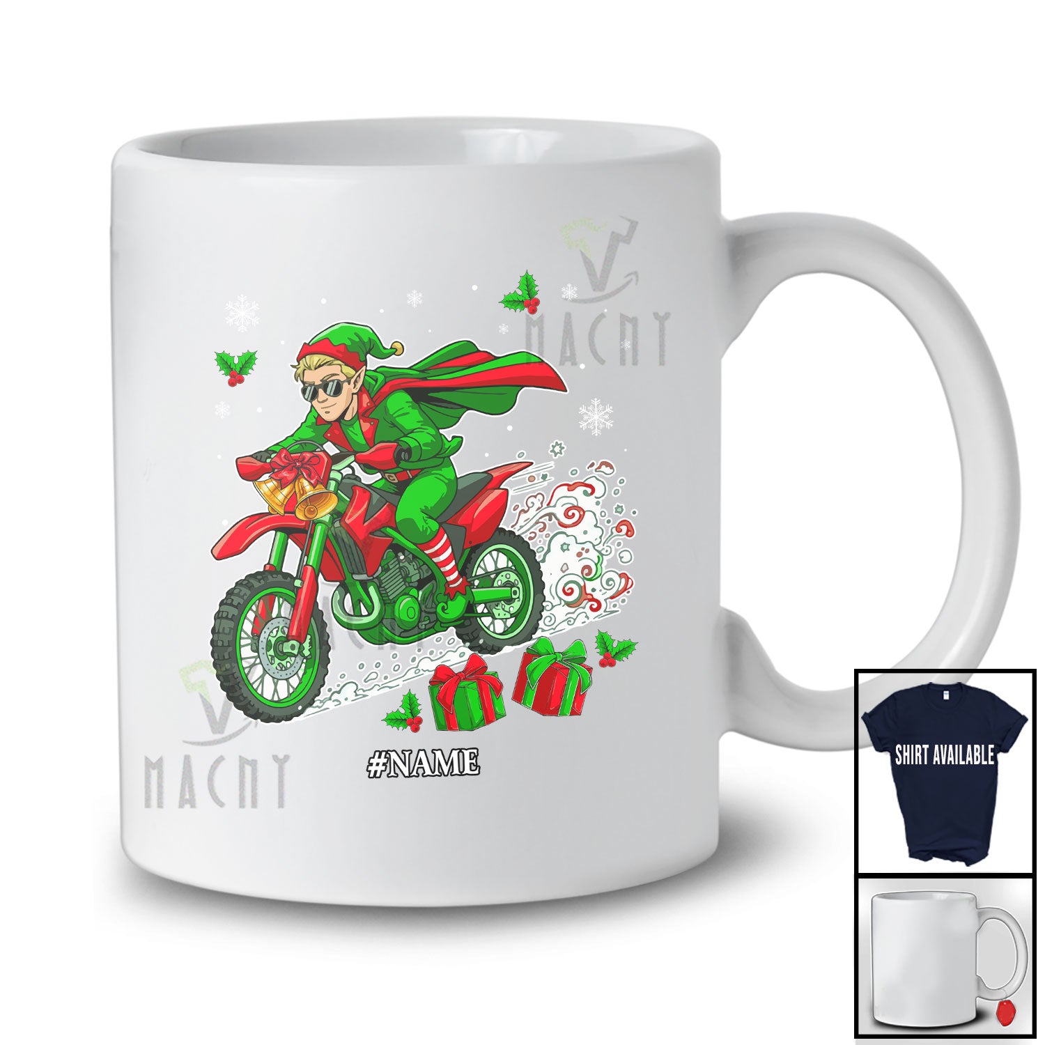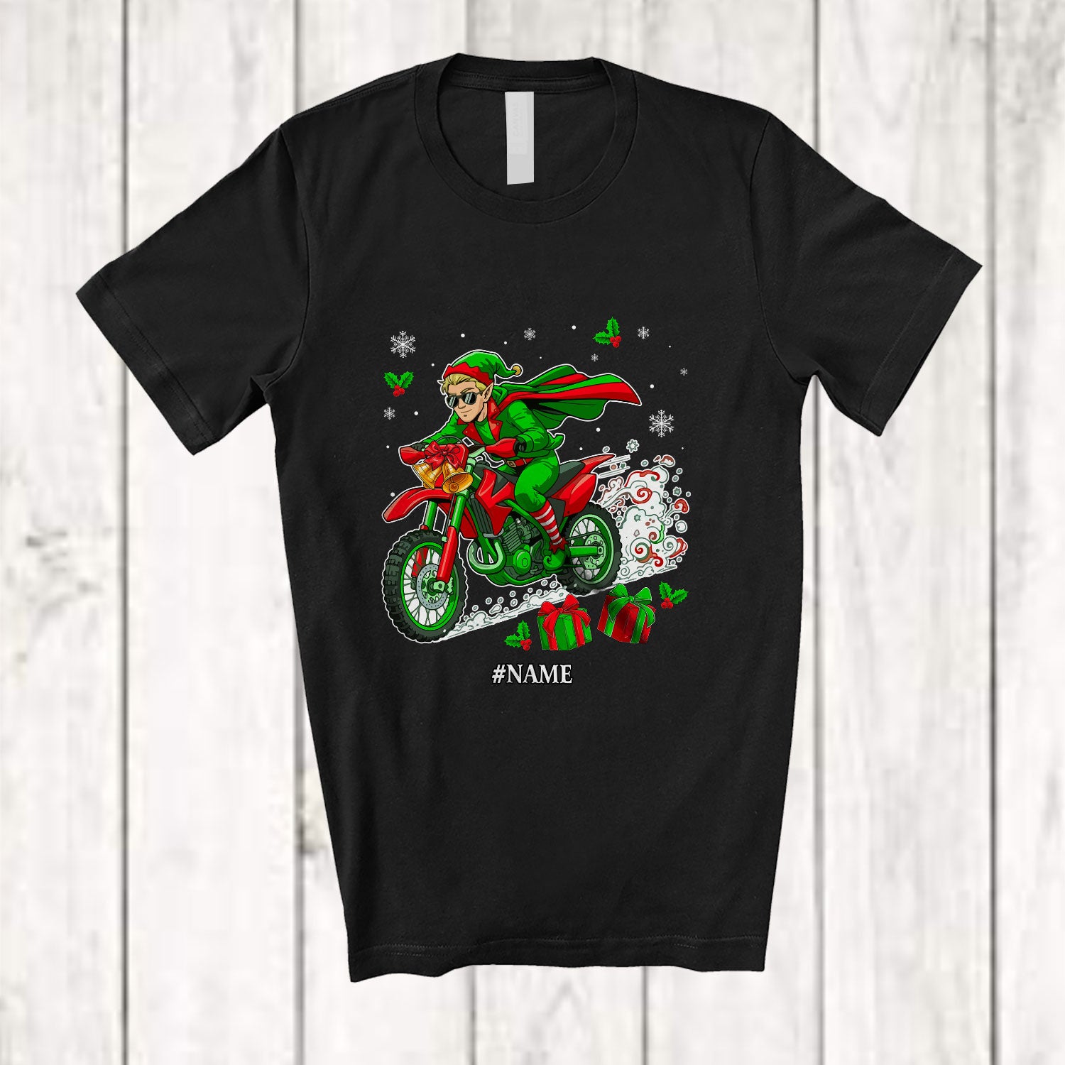 new MacnyStore - Personalized Custom Name Elf Riding Dirt Bike; Amusing Christmas Rider Biker Snow; Family T-Shirt – Macnystore