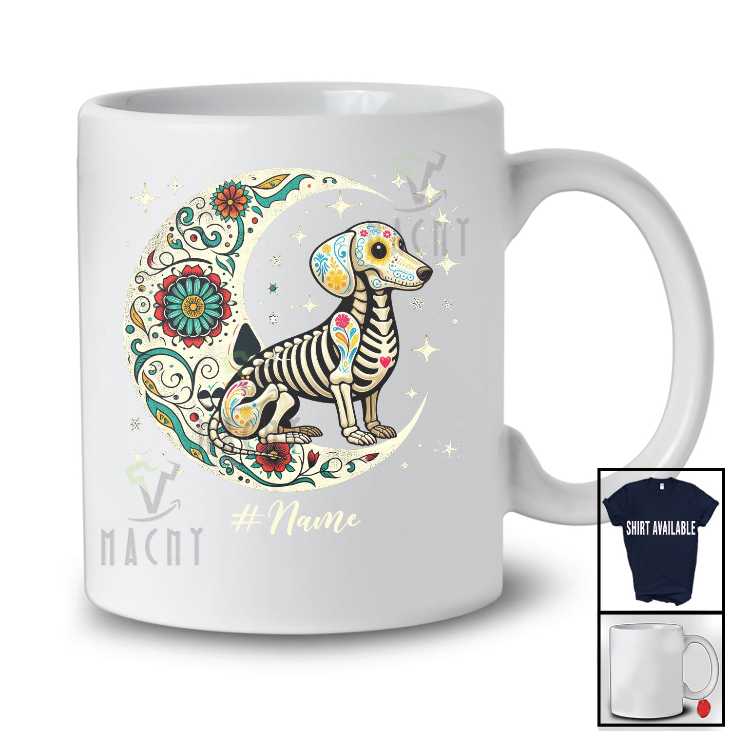 new MacnyStore - Personalized Custom Name Floral Moon Skeleton Dachshund; Scary Dia De Los Muertos Halloween T-Shirt – Macnystore