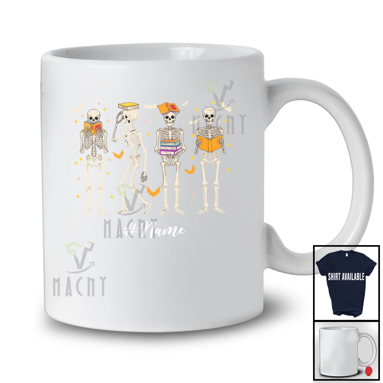 new MacnyStore - Personalized Custom Name Four Skeleton Book Nerd; Joyful Halloween Teacher Librarian T-Shirt – Macnystore