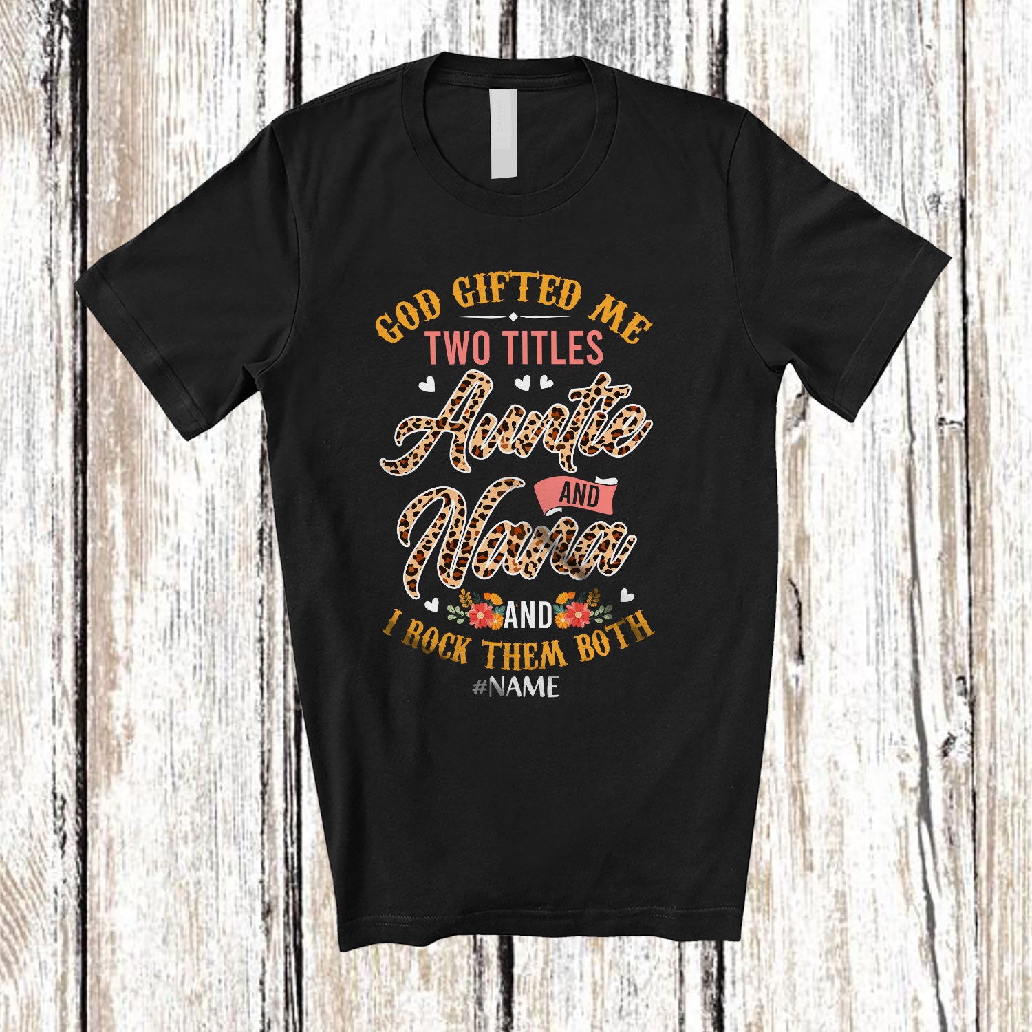 Personalized Custom Name God Gifted Me Two Titles Auntie Nana; Lovely Mother's Day Leopard T-Shirt