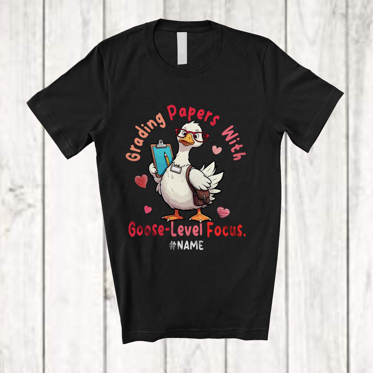 Personalized Custom Name Grading Papers With Goose-Level Focus; Joyful Back To School Teacher T-Shirt