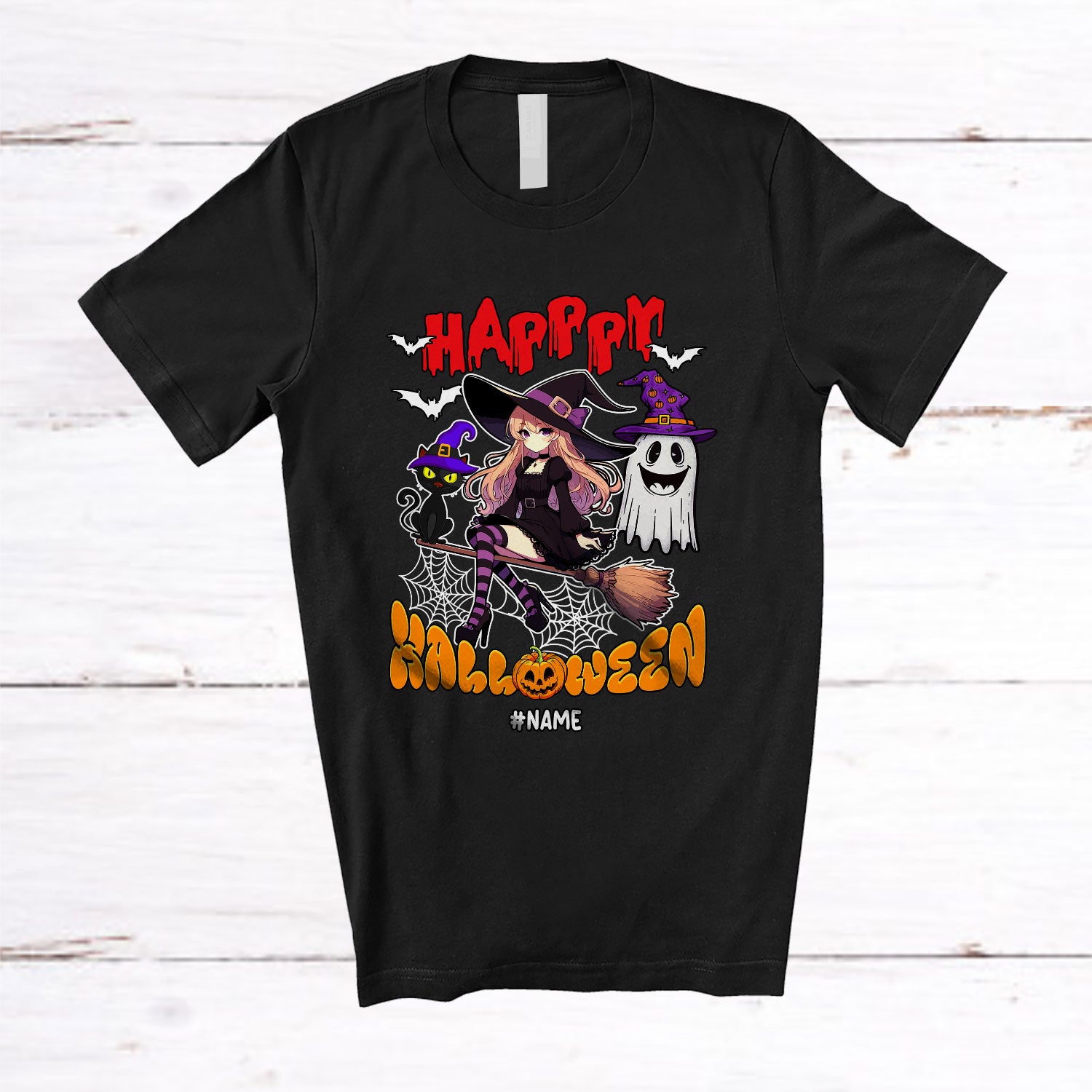 • Personalized Custom Name Happy Halloween; Adorable Witch Ghost Boo Candy; Family T-Shirt. This cotton t-shirt is a durable staple product with a classic fit. One of the most popular items, it has a relaxed style made for everyday and casual wear.